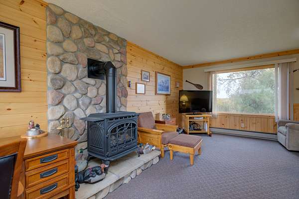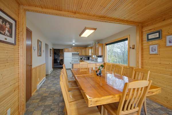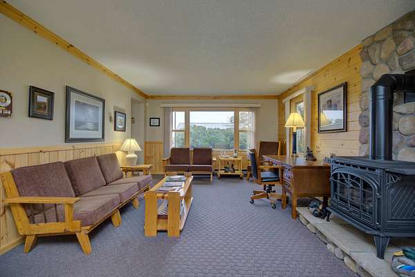 The lodge is a two story frame structure and a basement with an approximate 50? x 31? outside dimensions. A water well drilled to a depth of approximately 380? and a septic system with a drain field are onsite and service the lodge. Electric baseboard heating is in place throughout the three levels. The basic features are as follows.