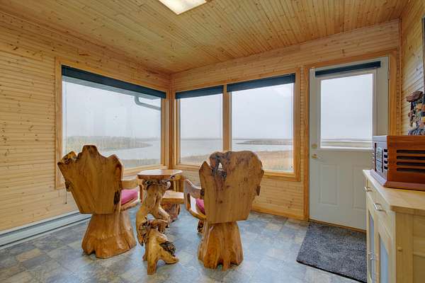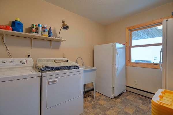 Main Level: Consists of the living area with furniture and a faux wood burning stove (propane); kitchen area comes with a refrigerator, stove/oven and dishwasher along with chairs and a table in the dining room. There is a "Gun Room" (approximately 17? x 13?) set up for the storage of shotguns, ammunition and required accessories and clothing. The laundry room has a washer and dryer along with two (2) additional freeezers. Storage closets and a 1/2 bathroom are also located on the main level.