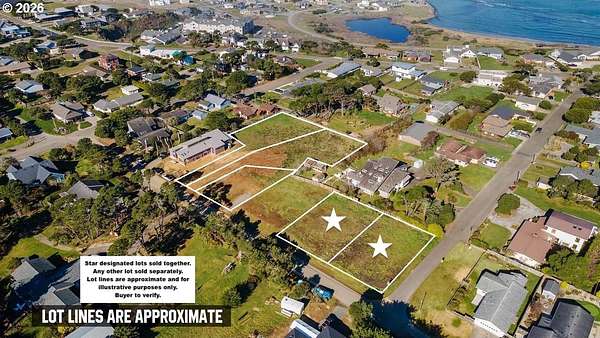 Est $2,443/moBundle package! TWO prime lots in Bandon on the West side located a short distance from beaches and Old Town. Bring your home plans! Two cleared lots! Corner lot and adjacent lot! According to county map, properties are out of the tsunami zone. Seller is a real estate licensee in the State of Oregon. Priced at only $350,000! Come Bandon by the Sea it to believe it!