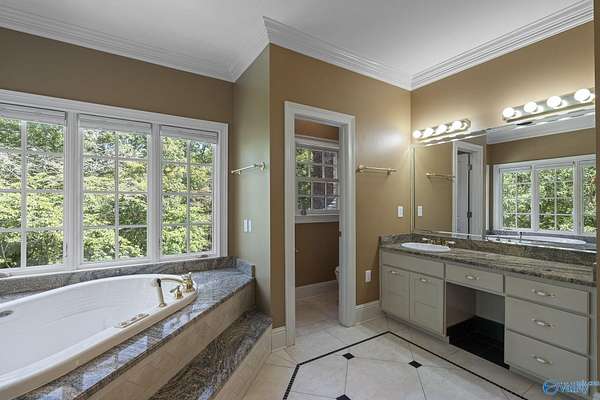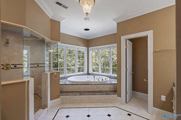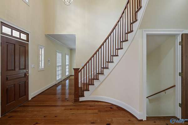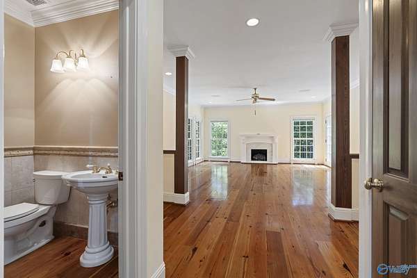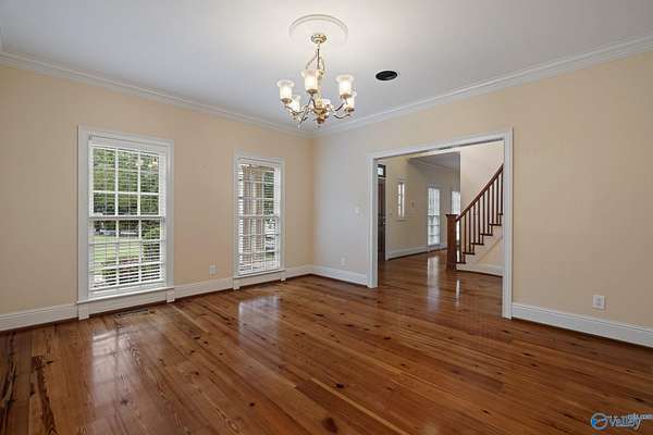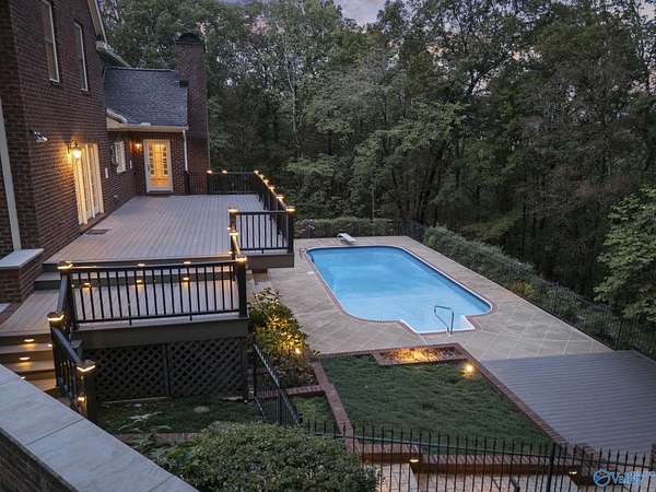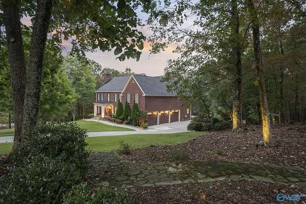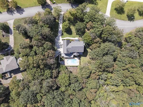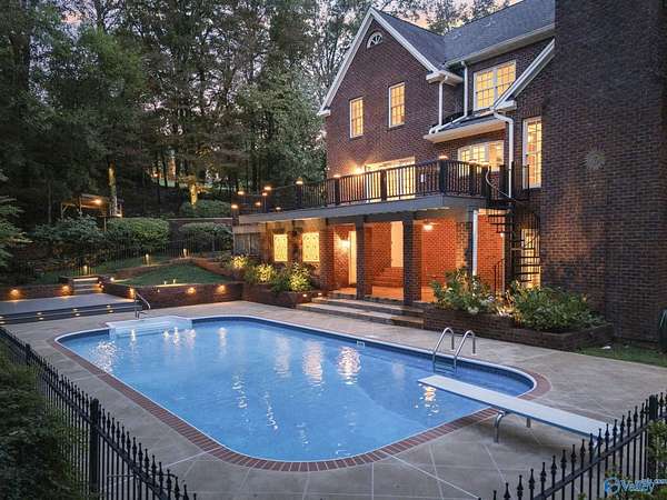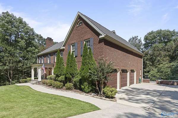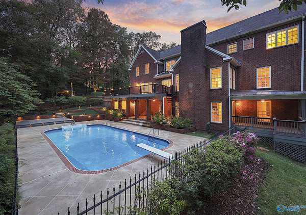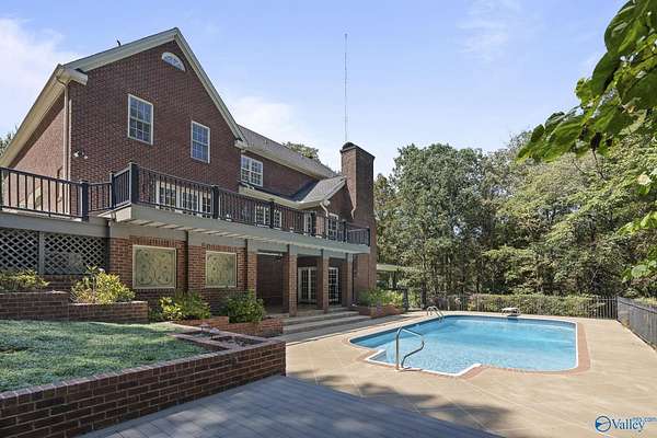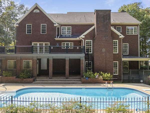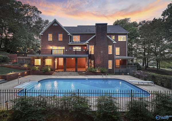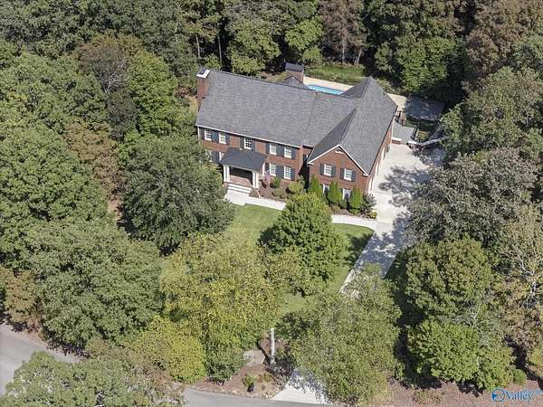 Elegant traditional brick estate in a private gated community just minutes from downtown Huntsville and Huntsville Hospital. With formal living and dining rooms, soaring 9' ceilings, & 5 or 6 bedrooms (depending on your needs), this home offers both sophistication & comfort. Charming pine floors & timeless, neutral finishes create a nostalgic sense of warmth, while a spacious rec room opens directly to the pool deck for seamless entertaining. The inground pool is enhanced by a pool house with bath and dressing area, ideal for hosting in style. The primary suite has a fireplace & separate sitting area. A 3-car garage and meticulously maintained interiors complete this rare offering.