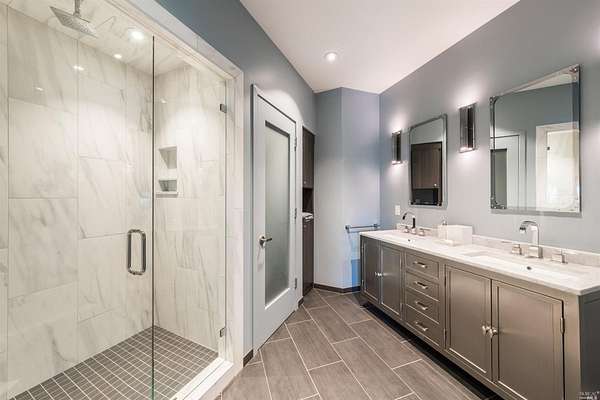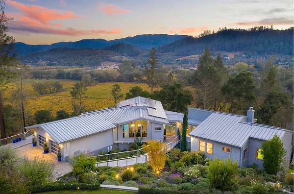 This private and gated sanctuary is the perfect blend of in-town living and hillside serenity. The updated Modern Craftsman retreat will immediately make you feel a cohesive indoor-outdoor living experience with expansive vistas through the many windows and abundant natural light. The main level includes an open living room, dining room, and kitchen, which open up to outdoor decks and grassy lawn perfect for al-fresco dining with panoramic mountain and valley viewsthree spacious bedrooms and baths complete the main level. Downstairs the home is an entertainer's paradise with a stunning wall-to-wall glassed-in wine cellar, bar, double-sided fireplace, and fireside seating on both sides. The lower level includes separate guest quarters with bath and an ample home office with built-in storage. Walkways perfectly carved into the nearly 5-acre property and two water features add to the meditative grounds.