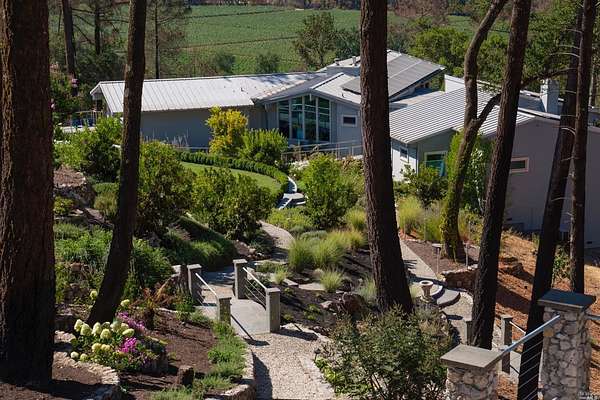 This private and gated sanctuary is the perfect blend of in-town living and hillside serenity. The updated Modern Craftsman retreat will immediately make you feel a cohesive indoor-outdoor living experience with expansive vistas through the many windows and abundant natural light. The main level includes an open living room, dining room, and kitchen, which open up to outdoor decks and grassy lawn perfect for al-fresco dining with panoramic mountain and valley viewsthree spacious bedrooms and baths complete the main level. Downstairs the home is an entertainer's paradise with a stunning wall-to-wall glassed-in wine cellar, bar, double-sided fireplace, and fireside seating on both sides. The lower level includes separate guest quarters with bath and an ample home office with built-in storage. Walkways perfectly carved into the nearly 5-acre property and two water features add to the meditative grounds.