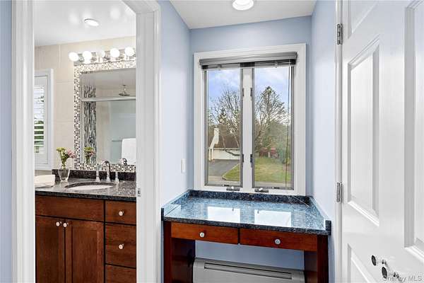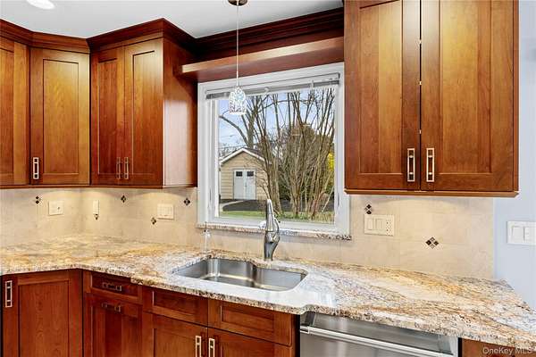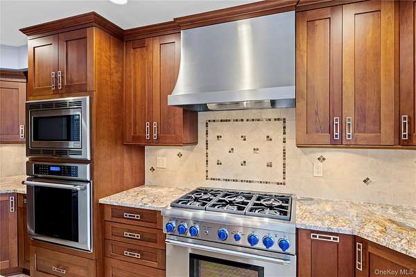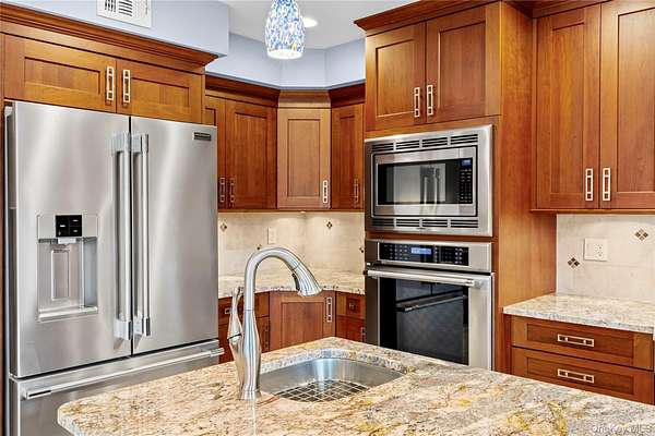 Welcome to 9 Bowen Place, Stony Brook - an expanded Eton Colonial set on a beautifully landscaped .39-acre property. This home offers exceptional curb appeal with a paved and expanded driveway, custom paver apron and walkway, and a fully fenced yard surrounded by mature plantings and privacy trees. The backyard features an oversized paver patio, creating a perfect setting for outdoor entertaining. A major 2013 renovation transformed both the interior and exterior, including the driveway, landscaping, fencing, siding, roof, and a 4x20 expansion that reimagined the Kitchen's layout and flow. Inside, the home is designed for both everyday living and entertaining, highlighted by a true chef's kitchen with granite countertops, an oversized center island with second sink, Frigidaire Professional French door Refrigerator and premium Thermador appliances including a 6-burner range, wall oven, and microwave. Additional features include water filtration on both sinks, coffee bar, and extensive cabinetry. The first floor features a spacious family room with fireplace, formal dining room, additional living space, laundry room, and powder room. Upstairs offers three well-sized bedrooms, a renovated full bath, and a large primary suite with walk-in closet and a spa-like en-suite. Additional features include 200-amp electric, Public Sewer connection, in-ground sprinklers, Andersen wood windows, Central Air Conditioning System and a whole house generator.