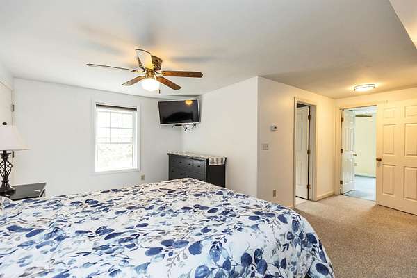 Discover the perfect blend of space, comfort, and efficiency in this 3,757 sq. ft. Cape nestled on 3.89 acres at the end of a quiet cul-de-sac. With 4+ bedrooms, 3 full and 1 half baths, and a 3-car garage, this home is designed for both everyday living and gracious entertaining. Inside, a thoughtful layout offers multiple suites for ultimate flexibility. The first-floor suite features a full bath, walk-in closet, bedroom and private sitting room--ideal for multi-generational living or long-term guests. Upstairs, a second suite offers its own bedroom, sitting room, and full bath. Two additional spacious bedrooms, a den, and a walk-in cedar closet provide even more room to spread out. Enjoy the sun-filled four-season room, a separate laundry room, and expansive living areas that combine convenience and charm. Energy-conscious buyers will love the owned solar panels, offering both environmental benefits and long-term savings. Set on nearly 4 acres of wooded privacy yet part of a neighborhood setting, this residence delivers the best of both worlds--peaceful seclusion and community. Showings begin at the open house on Saturday, 9/27 10:00AM to 11:30 AM.