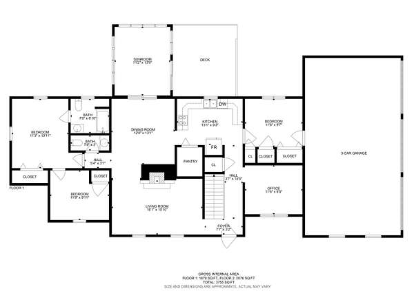 - Basement, Bathroom x 4, Bedroom x 4, Dining Room, Kitchen, Living Room, Office
