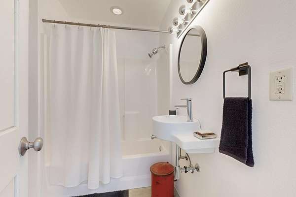 - High Ceilings, Home Office, Main Level Primary, Multiple Living Areas, Tub Shower