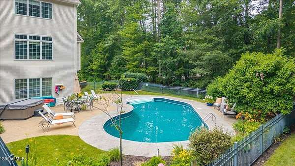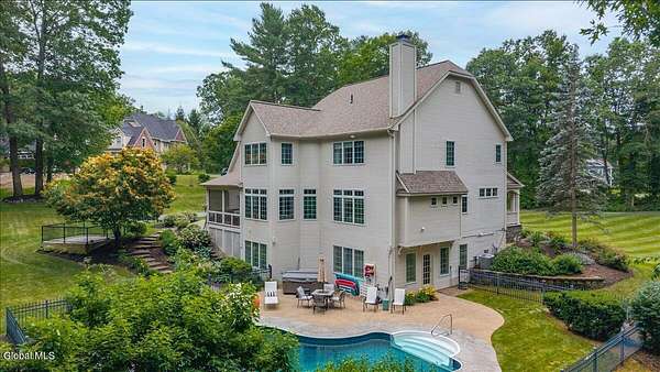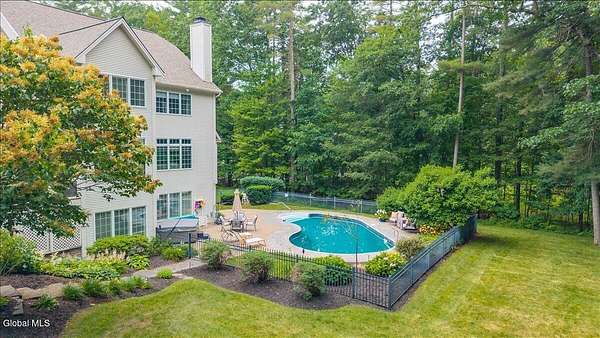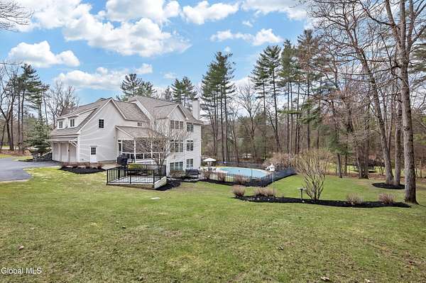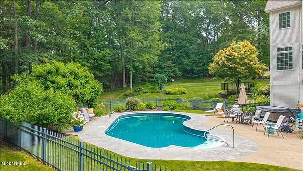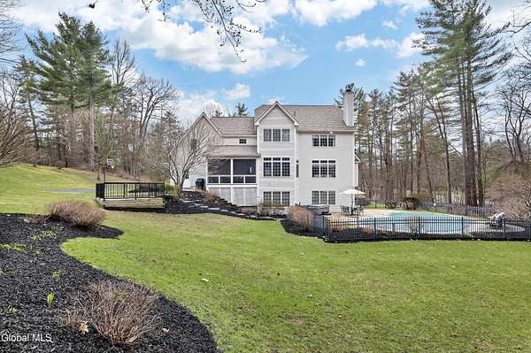 OPEN HOUSE CANCELLED!!!!Welcome to Cherry Hills, a custom John Witt community, and 9 Cherry Tree Lane is one of its finest. From the moment you pull in, this home makes a statement. Custom exterior stonework, a three-car garage with epoxy floors, and a front porch with a swing that adds a great touch. Tucked on a quiet cul-de-sac on over 2 acres, the privacy feels like you're a million miles away, yet minutes to downtown Saratoga Springs and the racetrack. The backyard is a true oasis with an in-ground pool, hot tub, patio, new liner, pump/heater, and a separate fenced area for the puppy. Inside, this home only has had 2 owners has ever called this home. Meticulously maintained, freshly painted, and thoughtfully detailed throughout. The kitchen features a custom island with warming drawer, pantry, and coffee bar. The screened porch off the breakfast nook is the kind of space you didn't know you needed until you can't live without it. Every room lives large; generous bedrooms, spacious bathrooms, and a laundry room that actually makes sense. Upstairs, a Jack and Jill bath plus an additional full bath gives kids and or guests their own space. The walk-out basement rounds it all out with a family room, game room, bedroom, and full bath stepping directly to the pool deck. This is the ONE!
