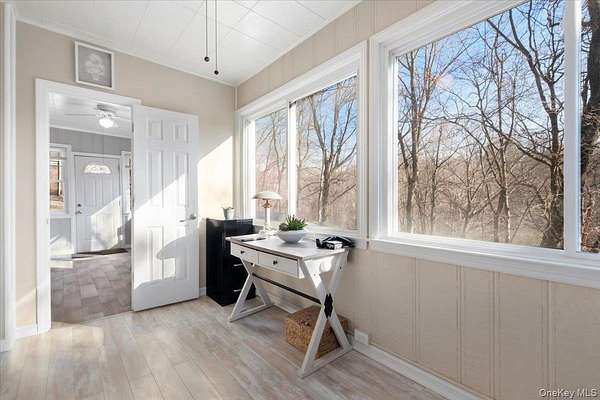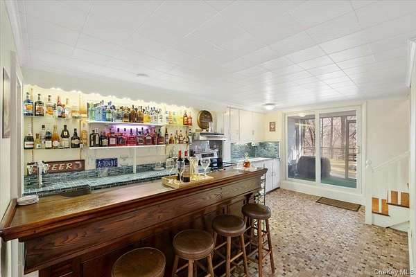 This isn't just a house-it's a place where life unfolds like a story, one magical chapter at a time. Tucked away at the very end of a peaceful road, you arrive to smooth, level parking and a detached two-car garage, as if the world has gently guided you here. Then comes the moment that changes everything: a soft descent down a stairway that feels like a quiet invitation into something extraordinary. Below, nearly 3 lush acres wrap around this homestead, creating the kind of private retreat most people only dream about. The land itself feels alive with possibility. Wide open spaces invite celebration-room for games, gatherings, laughter, and memories yet to be made. A former tennis court now offers endless potential for play, parking, or future creativity with subdivision. Wander the grounds, ride bikes, garden, explore, or simply pause by the stream and let its gentle whispers carry your thoughts away. In warmer months, the trees bloom into a natural sanctuary; in cooler seasons, the scenery becomes a living work of art. Every view, every sound, every season brings its own quiet beauty. Inside, the story continues across 2,800 square feet of thoughtfully designed living space. A sunlit enclosed porch welcomes you in-perfect as a bonus room, studio, or peaceful sitting area. From there, the living room and kitchen flow seamlessly together, blending warmth, elegance, and comfort. The kitchen is both beautiful and functional, with abundant cabinetry, stainless steel appliances, and a cozy sitting island that invites conversation. A charming brick, wood-burning fireplace anchors the living and dining space, offering timeless character and a sense of home. An office with wraparound windows combined with yet another sunroom overlook the surrounding nature, creating an inspiring work-from-home setting-or a flexible space for play, guests, or quiet retreat. The primary bedroom offers serene views and rest, complemented by two additional spacious bedrooms and a full bath that serves them with style. Just when you think you've seen it all, the home reveals another surprise: a massive walk-up attic, brimming with potential for an artist's studio, music room, or future living space. And still, the story continues. The walk-out lower level feels like a home of its own, featuring a summer kitchen with a beautiful custom bar, an expansive recreation room, a soothing family room with fireplace, a full bath, and exceptional storage-ideal for extended living or guests. Even beyond that, beneath the garage, additional rooms await-ready to become a workshop, studio, or whatever your imagination desires. Perfectly located just a few miles from the train, Route 9, and the Taconic Parkway, this home offers the rare balance of convenience and escape. You can commute with ease, yet once you arrive, it feels like you've gone away-every single day. Lovingly maintained and thoughtfully upgraded, from gleaming hardwood floors to fresh paint, beautiful masonry, flagstone, and countless details of care, this home has been cherished. Now, it's ready for its next chapter. The torch is being passed. The story is waiting. All that's missing... is you.