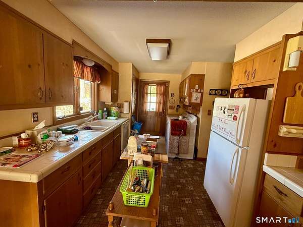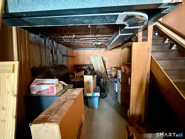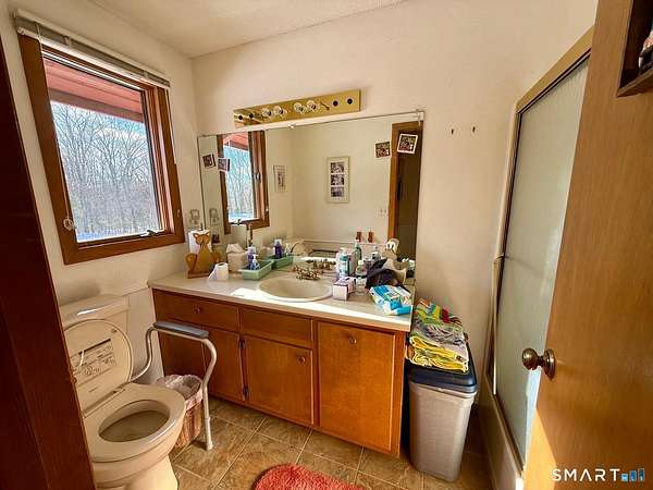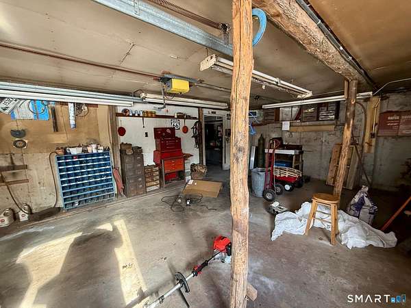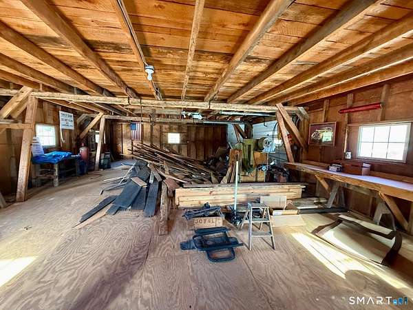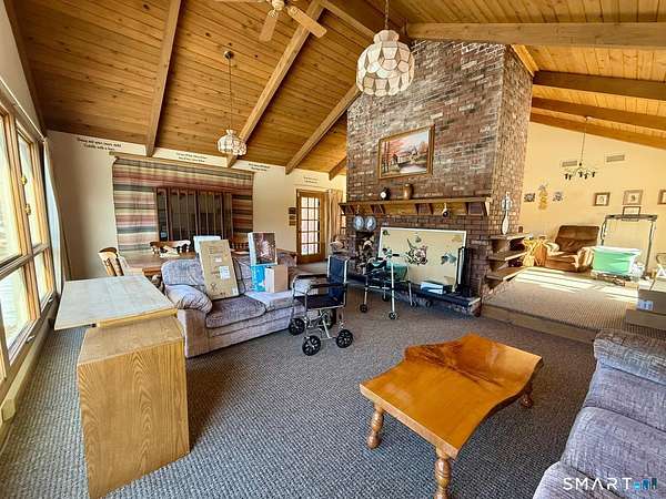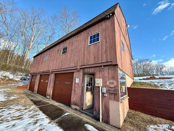 Tucked away at the end of a quiet cul de sac, 9 Daran Lane feels like a private retreat in the heart of North Granby. Set on an incredible 7.71 acres, this contemporary home offers the kind of peace, space, and privacy that is hard to find, yet still keeps you connected to everyday conveniences. Inside, the layout is open and inviting. The kitchen flows into a dramatic living and dining area with vaulted ceilings and walls of windows that fill the space with natural light. At the center of it all is a striking brick double sided fireplace that anchors the room and creates a warm, welcoming focal point. It is the kind of space that works just as well for quiet evenings as it does for hosting family and friends. All three bedrooms are located on the main level, including a spacious primary suite with its own full bathroom and walk in closet. The finished lower level adds another 336 square feet of flexible living space, perfect for a family room, home office, gym, or media area. There is also an unfinished section ideal for storage, along with an attached tandem garage. Outside, the property truly sets itself apart. The expansive acreage offers endless possibilities, and the large three story barn is a rare bonus. With five vehicle bays, heat, and electric, it is ideal for car enthusiasts, contractors, hobbyists, or anyone needing serious space for equipment, storage, or creative projects.
