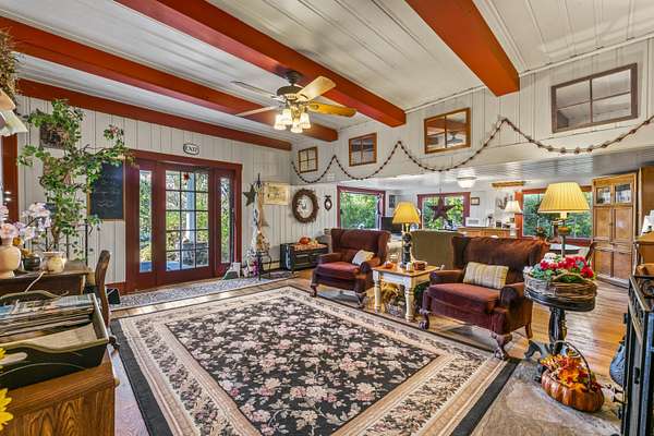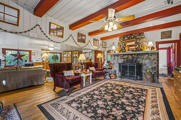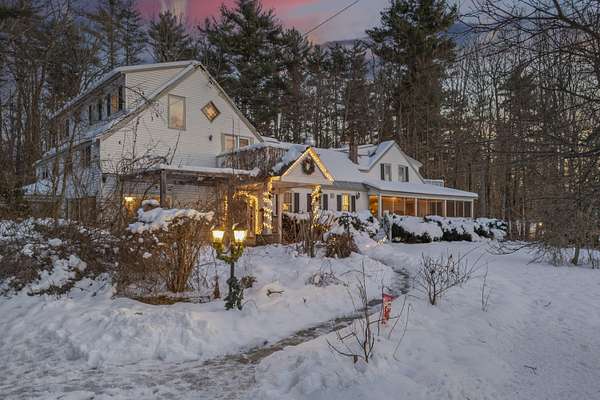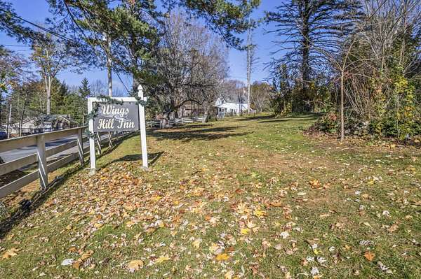 The Wings Hill Inn offers an experience in historic charm with its stone walls and walkways, wooden fences, lush gardens, private abutting conservation land, post and beam construction, a fieldstone fireplace, shiplap walls, wood floors, floral walls, wrap around porch and water views. Guests from around the world come back to enjoy breakfast on the porch, cozying up around the fireplace for a game of cards, or a short walk to Belgrade village to enjoy restaurants, shopping, an ice cream, or visit iconic Days General Store. Belgrade Lakes is perfectly situated between Long and Great Pond, and close proximity to year round recreational activities including a golf course, hiking trails, public water access for boating, swimming and kayaking , and winter fun with local snowmobile trails and ski mountains. This beauty is turn key, and furnished with 10 bedrooms and 9 bathrooms making it the perfect family compound, vacation home or investment opportunity as a bed and breakfast in today's lucrative short term rental market. Escape from the hustle and bustle, balcony sunsets, the call of loons in the summer, beautiful fall foliage and falling snow against the white lights in the winter are waiting for you to embrace the unique and timeless experience of the Wings Hill Inn. .