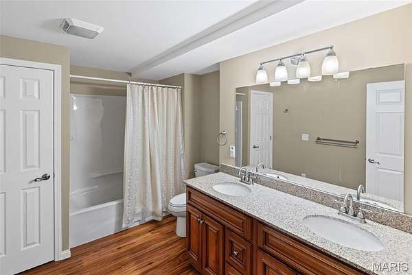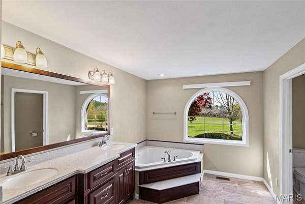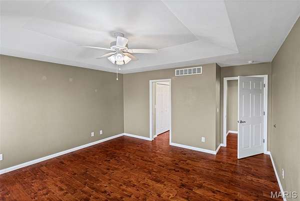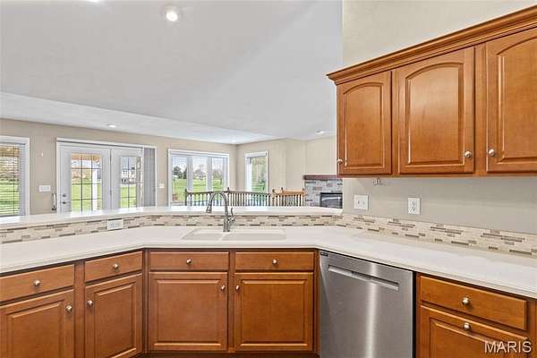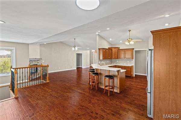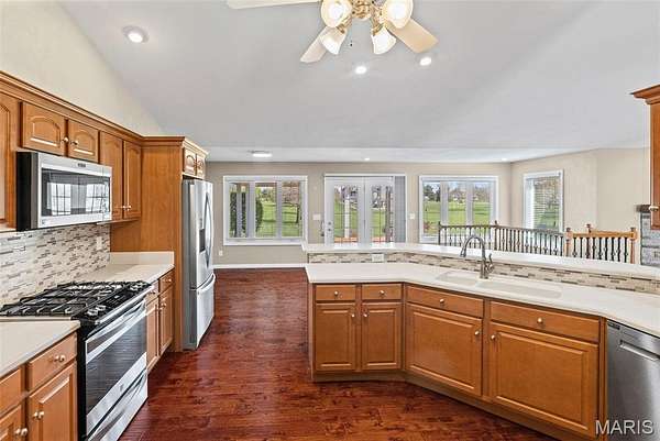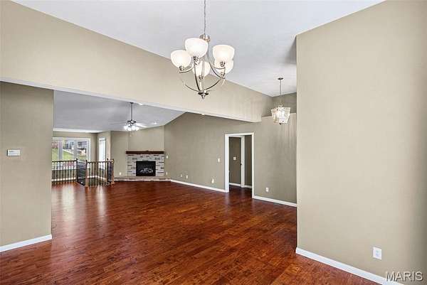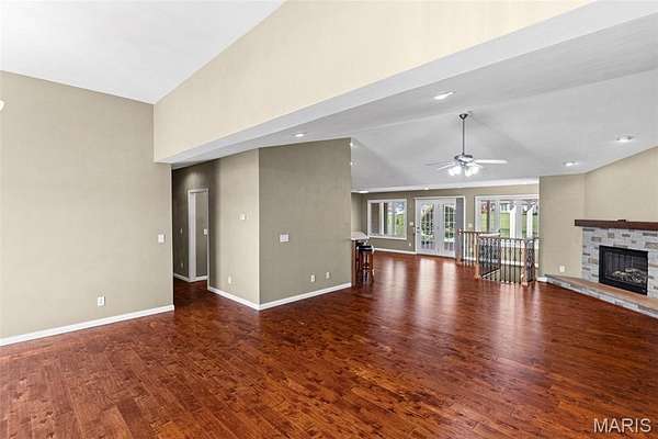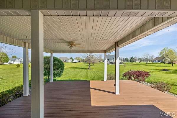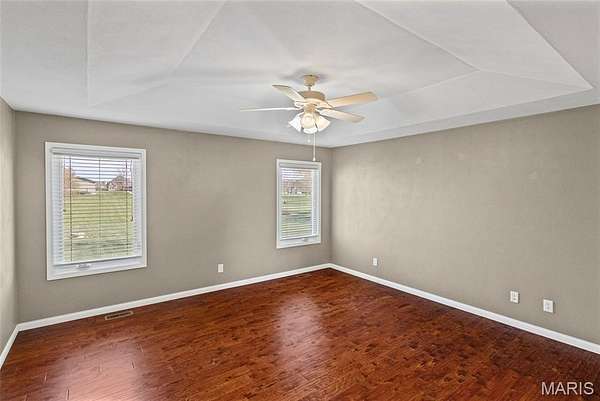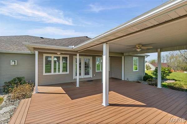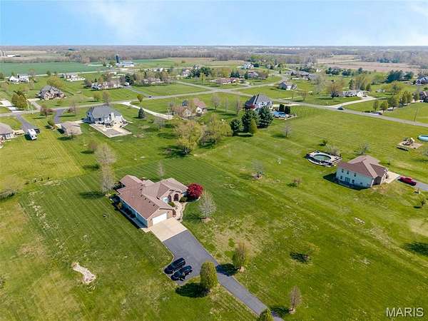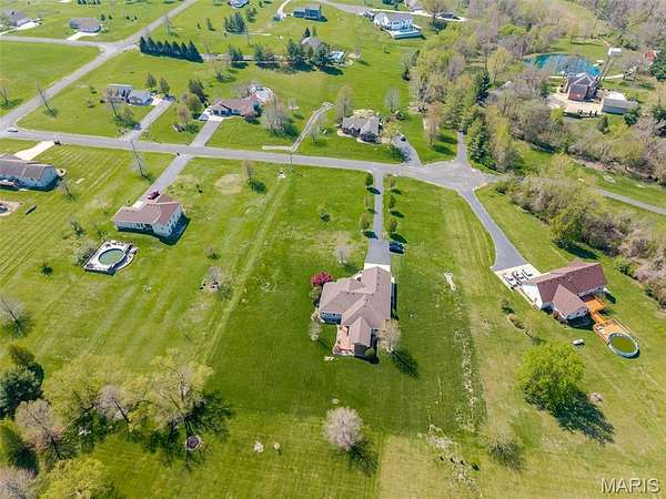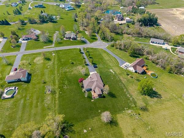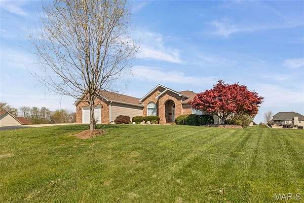 Beautiful home situated on approximately two acres in Heartland Meadows! This spacious property offers six bedrooms and three bathrooms with a desirable split-bedroom and open floor plan design. The primary en suite features a soaking tub, walk-in shower, double sinks, and dual closets. The main living area showcases a gas fireplace and flows seamlessly into the kitchen and dining spaces, ideal for everyday living and entertaining. Three additional bedrooms are located on the main level, and all bedrooms include closet organizers. The lower-level features two additional bedrooms, full bathroom with double sinks, a large family room with built-ins, offering additional living and gathering space, along with two storage rooms for added convenience. Enjoy the 20x24 covered composite deck, perfect for relaxing or hosting gatherings. Numerous updates have been completed, including HVAC (2019), casement windows (2021), and roof (2022). Additional list of improvements available, please ask your Realtor.
