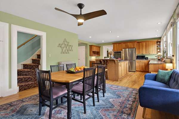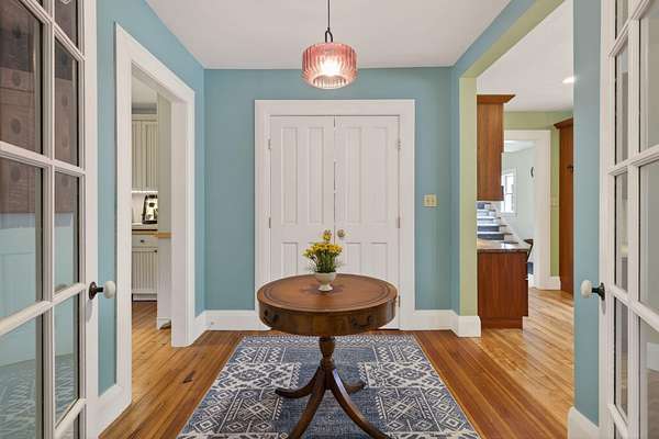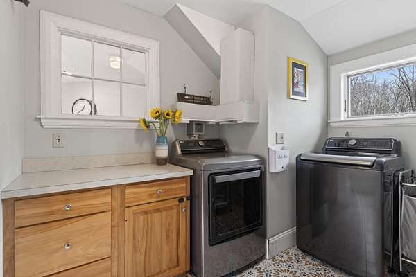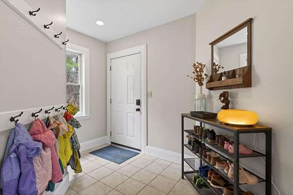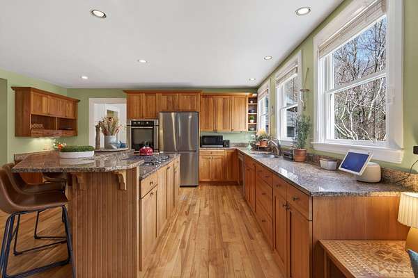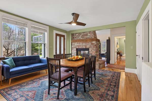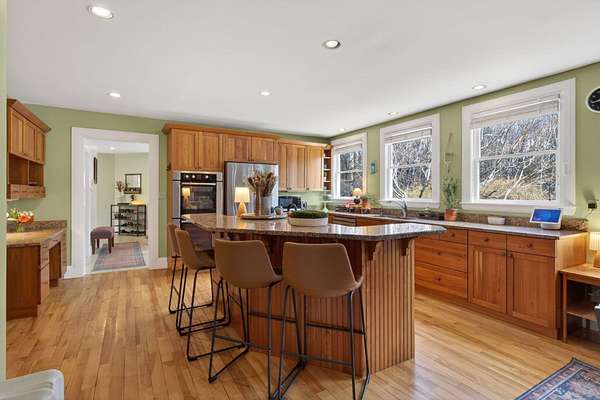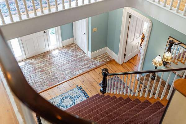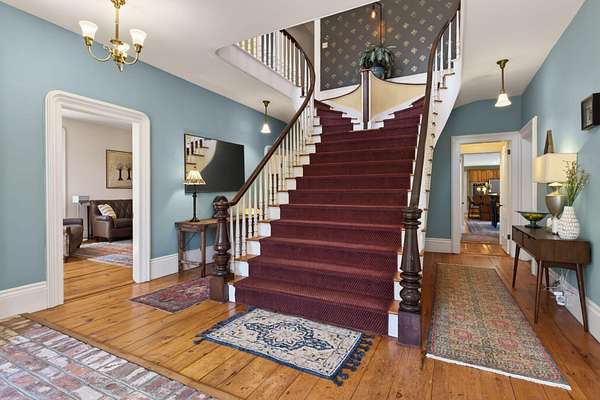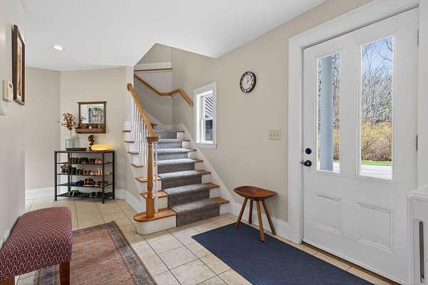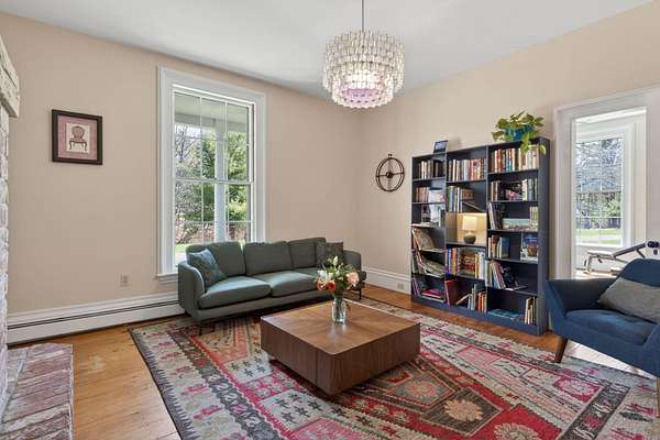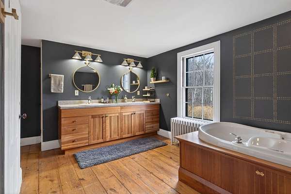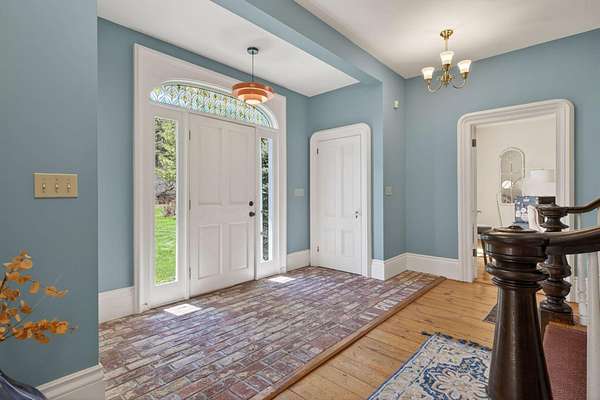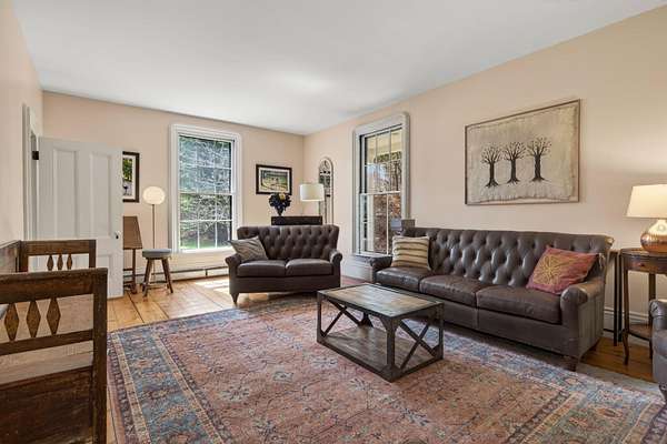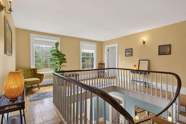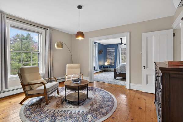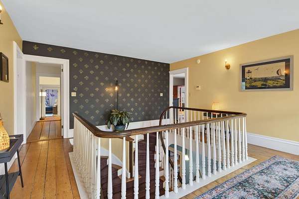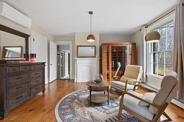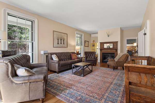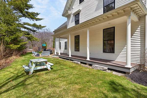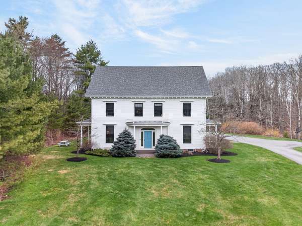 This beautiful 1850's farmhouse was moved in 1999 and is now situated on 5 acres of fields and mature fruit trees bordered by the Piscataqua River. Painstakingly restored, and on a modern foundation with all of today's updates enjoy the beauty of historical charm with the convenience of modern amenities! 3 floors of fabulous space include an open concept kitchen with a huge pantry and a separate butlers pantry. The formal dining space leads to a formal living room that has floor to ceiling windows. The first floor is rounded out with a fantastic mudroom, 2 half baths, two sitting rooms, one with a double sided glass fireplace and a 3 car garage. Upstairs you will find 4 large bedrooms, one with an en-suite bath for guests. The primary bedroom suite is enormous and features a sitting room with sauna, tiled shower, huge walk-in closet, jacuzzi tub, water closet and gorgeous hardwood floors throughout. The second floor laundry/utility room with another 1/2 bath is handy and convenient. The third floor of this home features another 1-2 bedrooms and 1/2 bath, plus two large storage areas for all of those holiday decorations. The natural light in this home can't be beat. Perfect for any kind of entertaining (both indoor and outdoors) or just perfect for quiet living. Just a stones throw from shopping, restaurants and otters amenities like the city of Portland and the airport. Come check out this beauty before she is gone! Open House Saturday 4/25 11am-1:00pm.