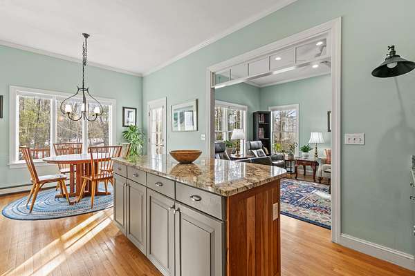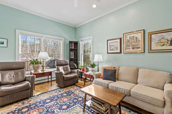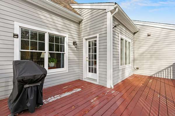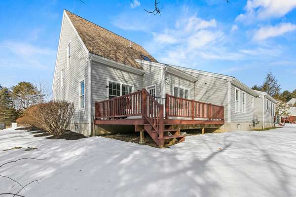 This light-filled contemporary condo, part of a small condominium community of 14 condos, is conveniently located in Yarmouth and features a spacious first floor ensuite primary bedroom, a beautifully renovated eat-in kitchen with a large island and granite countertops, as well as a walk-in pantry. The dining area opens onto a spacious deck.The kitchen adjoins the light-filled living room and a separate study/music room provides the perfect retreat. Upstairs opens to a sitting area, as well as a second bedroom with a walk-in closet and full bath.The large basement provides great opportunities for storage and expansion. It is convenient to the village of Yarmouth's great restaurants, Rosemont and other shops, walking trails and has convenient access to I-295.
