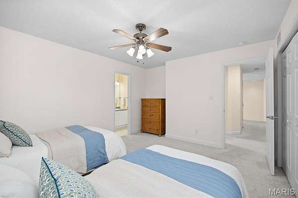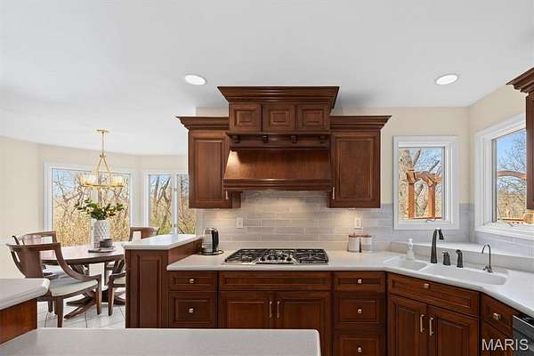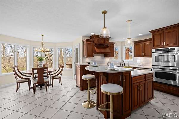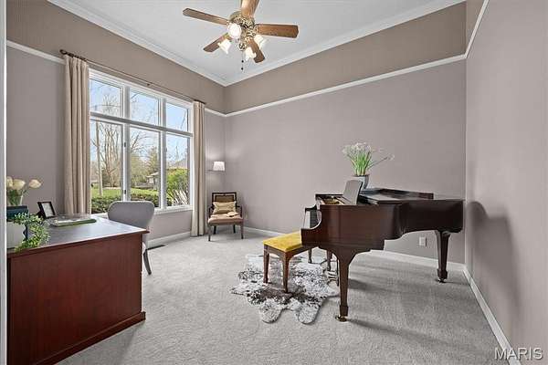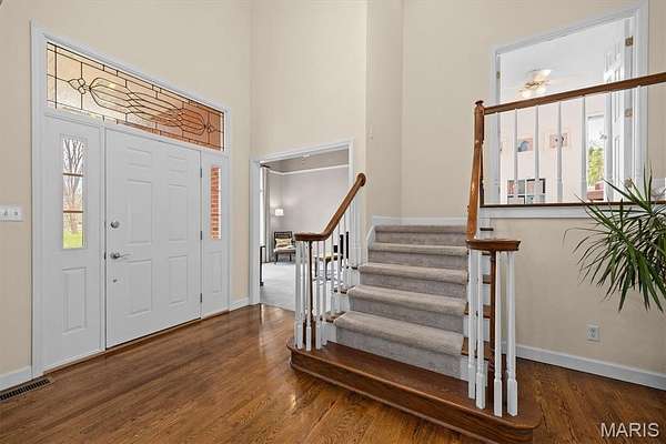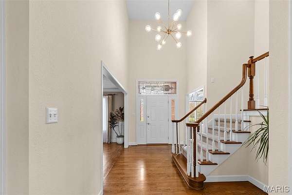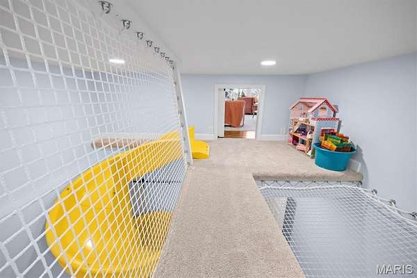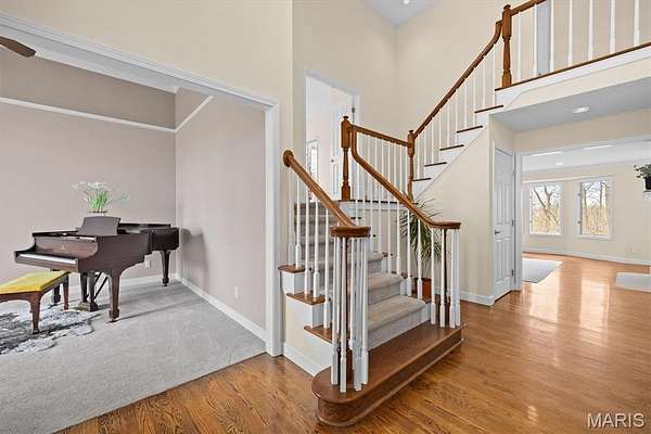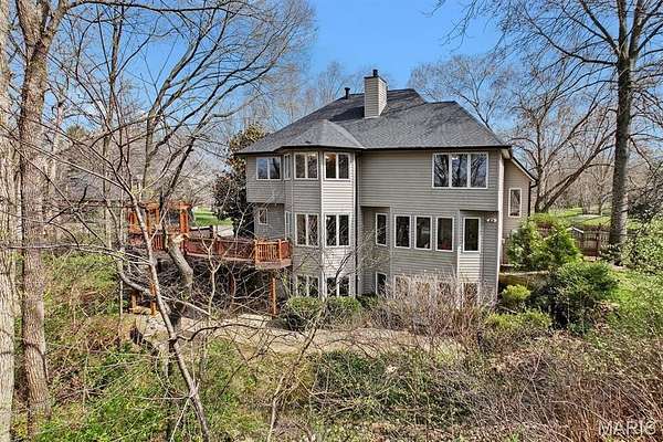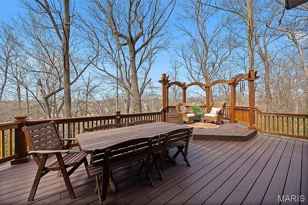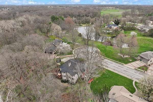 Experience luxury living in this exceptional 5-bedroom custom executive home set on 1.5 acres in a private cul-de-sac. A grand entry welcomes you with a formal office & elegant formal dining room showcasing detailed custom millwork. The chef's kitchen is a standout with dual built-in ovens, Thermador gas range, two-zone island, pantry, & a bright breakfast nook that opens to a large composite deck overlooking a private, wooded backyard. The inviting living room features abundant natural light & is anchored by gas fireplace. The petite bookcase covertly reveals a one-of-a-kind play loft complete with a slide to the lower level, climbing wall, & additional play space. A second office, with privacy, is conveniently located on the staircase landing. Upstairs, the primary suite offers dual closets & a spa-like bath with double vanities, soaking tub with window surround, & a private water closet. Two bedrooms share a Jack & Jill bath, while a third includes its own ensuite. A laundry chute provides added convenience to the main-level laundry room. The finished walk-out lower level is designed for entertaining & everyday living, featuring a kitchenette, full bath, bedroom, & flexible space for recreation, fitness, or hobbies. Enjoy multiple outdoor living areas with natural stone stairs, patio spaces, & mature landscaping including hostas & hydrangeas. Freshly painted, updated lighting, new mailbox & new roof. Ideally located minutes from downtown OFallon, Scott AFB, and St. Louis. No HOA, however the neighborhood pool is members only for $600/yearly. Deadline to sign up for season is mid April. Membership is transferable to new owner.