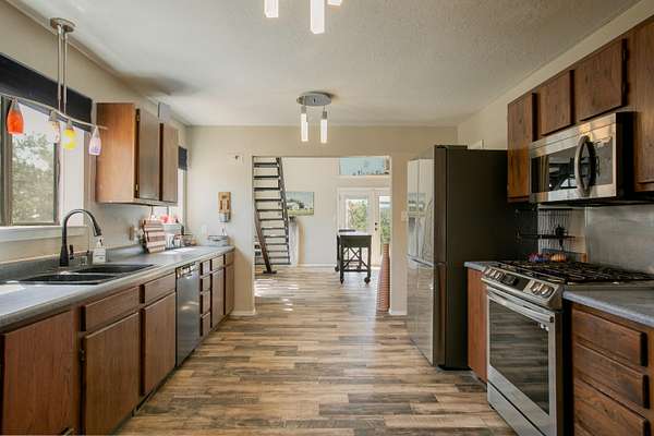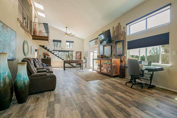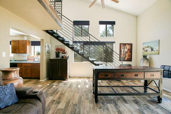 New Roof! (7/2025) New Gutters coming! (7/15) Remodeled boasting 3 bedrooms, 3 bathrooms, and a generous 2500 square feet of living space. Soaring high ceilings that create an open and airy atmosphere. The custom metal staircase serves as a stunning centerpiece, inviting you up to the well-appointed rooms. Bask in breathtaking views from your property, further enhanced by the privacy of a gated driveway. Enjoy the convenience of ceiling fans and updated light fixtures ensuring comfort and style go hand-in-hand. Stay cozy with the latest technology at your fingertips, such as a pellet stove (2022) with wireless thermometer control, and propane wall units (July 2024). Take advantage of the huge bonus room with a full bath, perfect for game room area, or whatever your heart desire