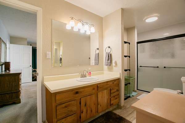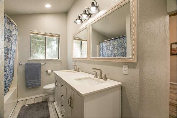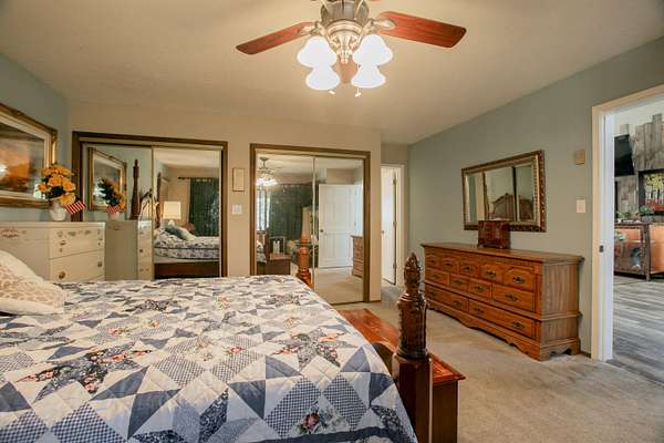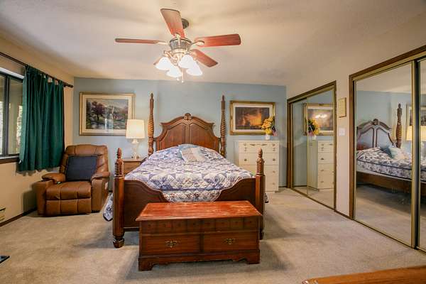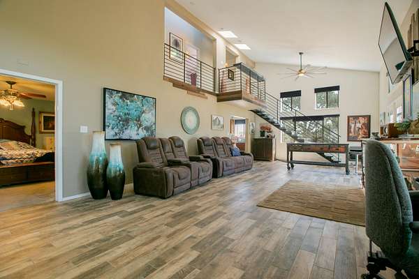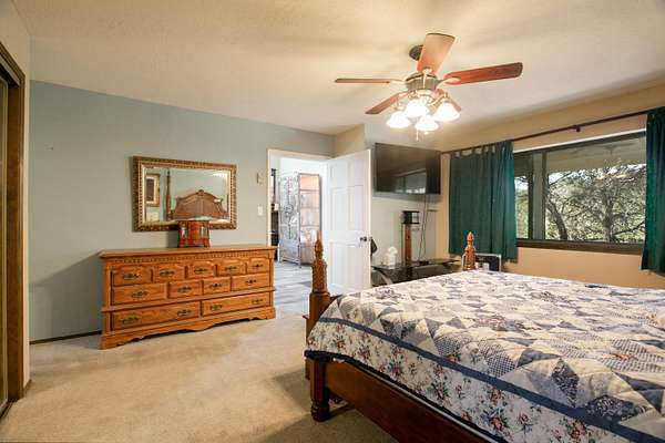 - Cathedral Ceilings, Ceiling Fans, Fireplace, Jack and Jill Bath, Living Dining Room, Main Level Primary, Multiple Living Areas, Separate Shower, Shower Only, Smart Cameras Recording