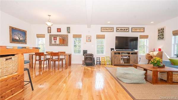 Wake up to mountain views and picturesque apple orchards in this newly built home perfectly situated in Marlboro, NY. From the moment you walk through the front door, the home is filled with natural light and an inviting open layout that blends comfort with modern living. The pellet stove adds warmth and charm, making the main living space the perfect place to gather year-round. The kitchen is designed for both function and style, featuring extra-tall soft-close cabinetry, ample storage, and direct access to a grilling deck off the dining area-perfect for summer evenings and weekend entertaining. The primary bedroom offers a spacious 14x12 layout, while two additional bedrooms (12x10 and 10x10) include double closets for plenty of storage. Downstairs, the finished lower level expands the living space with a media room, full bath, laundry area, and walk-out access. With its flexible layout, the home could easily accommodate an in-law suite or mother/daughter arrangement. Located just minutes from I-84, the Newburgh-Beacon Bridge, and the NYS Thruway, this home offers the perfect balance of peaceful Hudson Valley living and easy commuting.