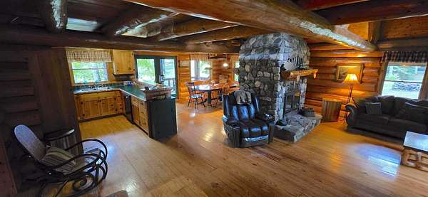 Picture this: a lifetime of dreaming finally realized, owning your very own slice of paradise nestled deep in the woods, complete with stunning riverfront views and absolute tranquility, entirely off the grid. While many spend their lives chasing dreams, yours is within reach. If this vision resonates with you, the moment has arrivedaEUR"your dream can become reality. Introducing a truly unique property: 100 acres of lush, wooded land with 800 feet of pristine water frontage on the Aroostook River, now available for you to call home. At the heart of this haven is an immaculate main lodge, a masterpiece of log home craftsmanship. The lodge's centerpiece is a magnificent two-sided wood fireplace, crafted from river stones handpicked by the lodge's builder. The main lodge features a spacious loft bedroom, complete with a full bath and laundry area, and an expansive living space designed for gathering. It's the perfect hub for guests staying in the three beautifully constructed log cabins, each with its own unique charm. Meet Moose View, Bear's Den, and the grand Eagle's Nest, measuring 22'x22'. Each cabin is equipped with power, water, and propane heat, along with fully functional bathrooms and propane lamps for backup lighting. The grounds are impeccably maintained, offering a serene escape from the everyday. Numerous outbuildings provide ample storage, and one is just steps away from becoming an additional sleeping cabin. The property is powered by a gas generator with a battery charging station beneath the main lodge, ensuring you stay connected even in the heart of nature. For snowmobile enthusiasts, the Maine ITS 85 snowmobile trail is right next to the front of the property! This is more than just a property; it's a dream come true. Don't let this once-in-a-lifetime opportunity pass you by!