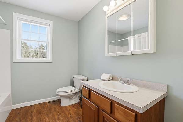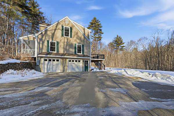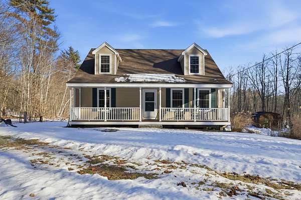 Charming Cape-style home set on a peaceful country lot in Nottingham, offering timeless New England appeal and a flexible, functional floor plan. A welcoming farmer's porch spans the front of the home, perfect for morning coffee or quiet evenings overlooking the surrounding woods. Inside, the first floor features a bright and open layout with kitchen offering ample cabinetry and counter space, flowing easily into the dining area and generous living room, ideal for everyday living and entertaining. A comfortable family room and first-floor bath add versatility for guests or work-from-home needs. Upstairs, you'll find three well-proportioned bedrooms, including a spacious primary bedroom, along with two full baths that provide comfort and convenience. The lower level offers excellent storage and future potential, while the attached garage makes New England winters a breeze. Set back from the road and surrounded by nature, yet conveniently located near local lakes, trails, and commuter routes, this home delivers the perfect balance of privacy and accessibility. A wonderful opportunity to enjoy relaxed country living in one of Nottingham's most desirable settings