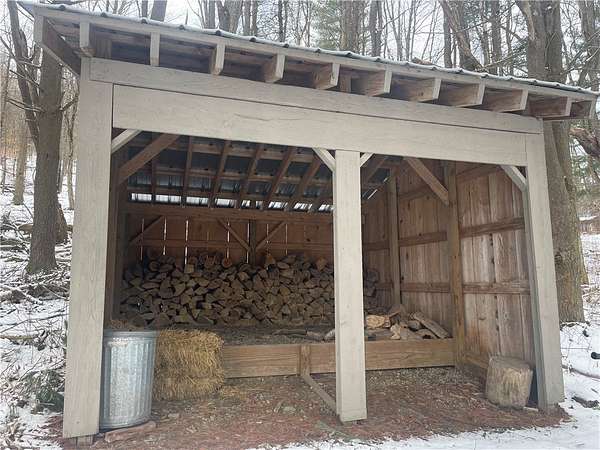 Charming Ranch on 1.5 Acres in the Village of Bainbridge Welcome to this beautifully maintained ranch-style home offering comfort, character, and room to enjoy the outdoors. Situated on 1.5 scenic acres, this inviting property combines peaceful country living with the convenience of village amenities. Step inside to discover 1,677 square feet of light-filled living space featuring timeless hardwood floors and a warm, welcoming layout. The spacious living room is highlighted by a cozy wood-burning fireplace, creating the perfect spot to relax on chilly evenings. The open living and dining area makes entertaining effortless while maintaining a comfortable everyday flow. The home offers 3 bedrooms and 1 full bath, all conveniently located on the main level. A full walk-out basement with wood stove provides excellent potential for additional living space, recreation, or a workshop. Hardwood floors through out and move in ready. Outdoors, the property truly shines. The expansive yard provides ample space for gardening, recreation, or simply enjoying the peaceful surroundings. A heated and insulated newer cabin with electric offers the perfect space for hobbies, an art studio, or workshop, and a woodshed adds practical storage. Additional highlights include: 1 car garage and quiet setting with room to roam. Offers the perfect blend of a wooded area and ample lawn to provide privacy. Whether you're sipping coffee on the porch, hosting summer gatherings, or envisioning future finishing projects in the basement, this home offers the perfect blend of comfort, charm, and opportunity. Amazing views overlooking the village of Bainbridge. This home conveys a high level of privacy and quiet.
