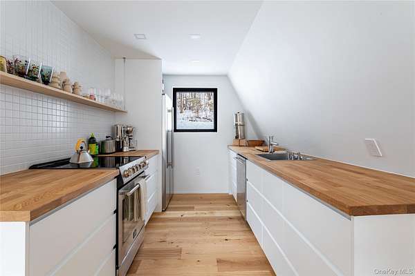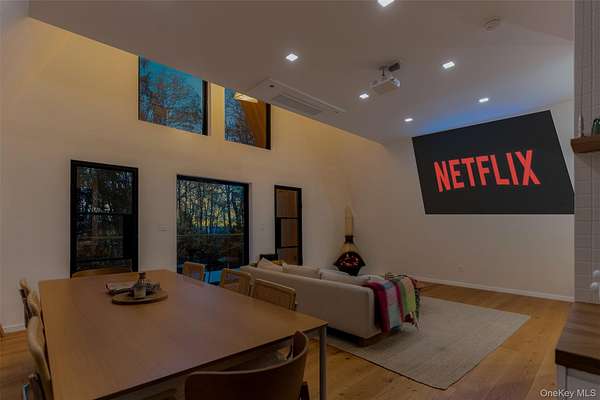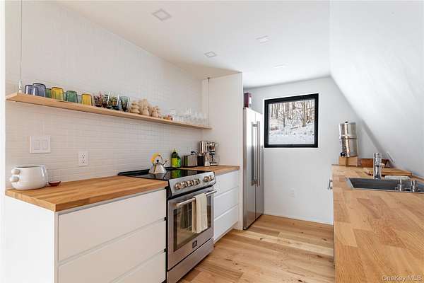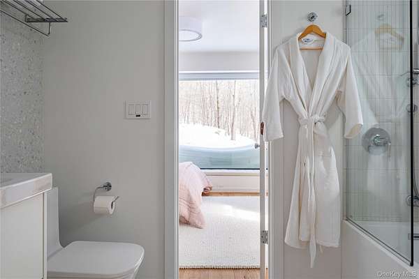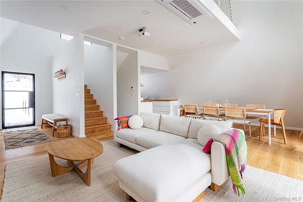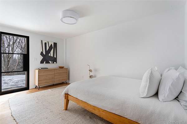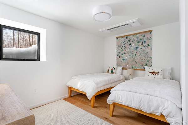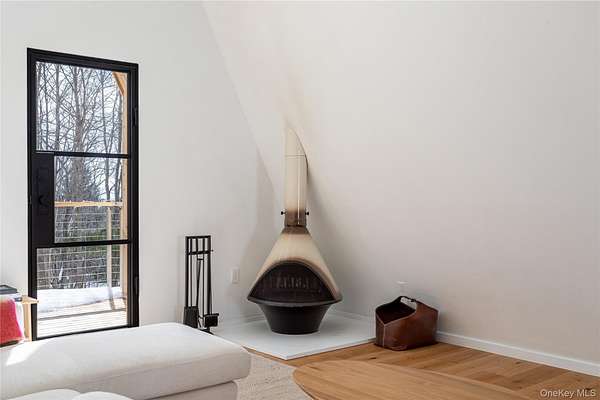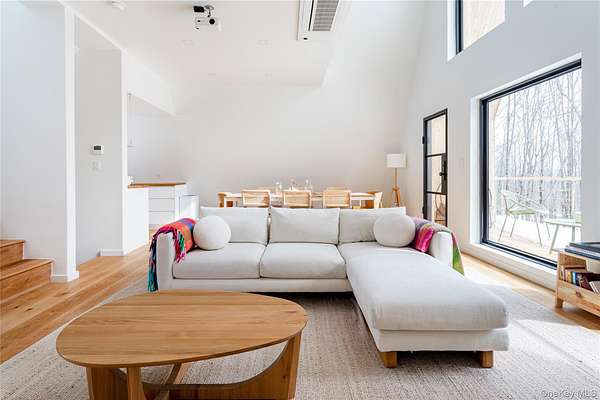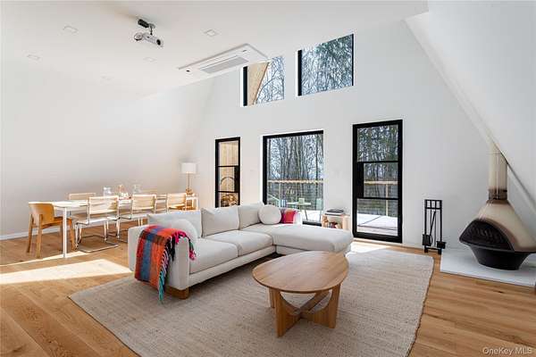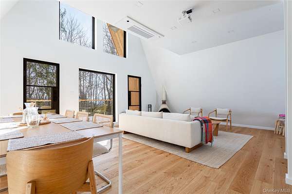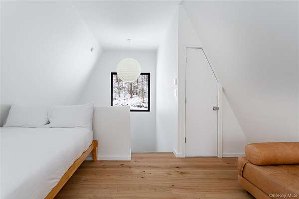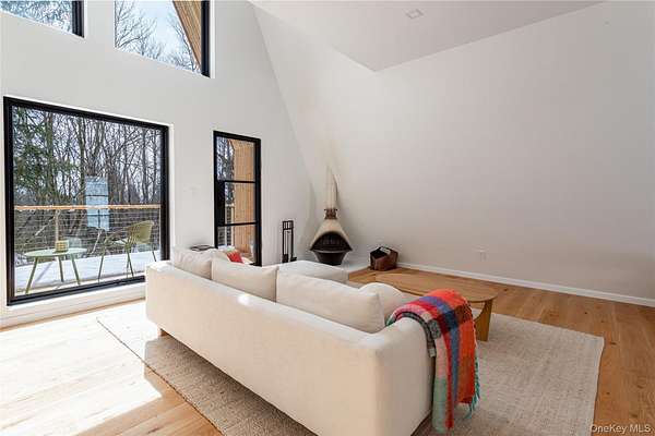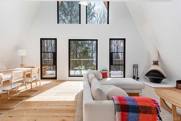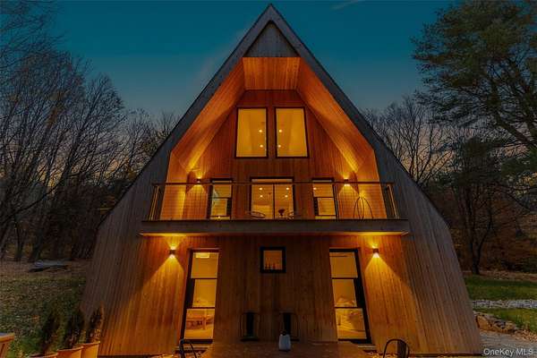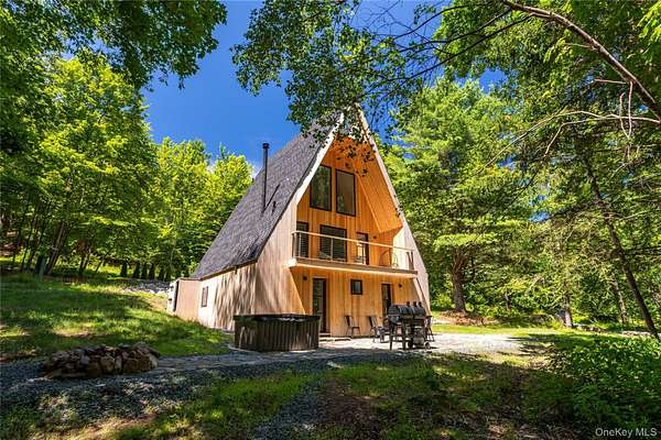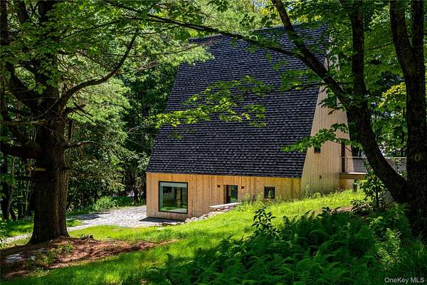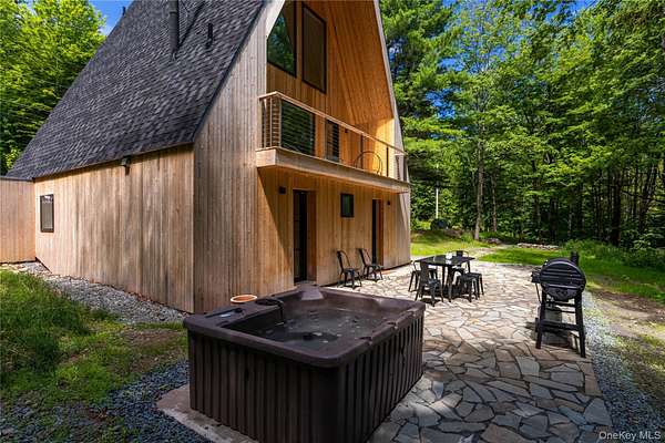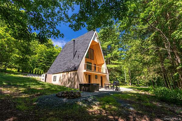 Tucked away in the woods just minutes from Minnewaska and Sam's Point, this newly built A-frame offers the perfect blend of modern comfort and natural serenity. Designed by Martin and Nicolas Quirot, sons of renowned French architect Bernard Quirot, the home combines Scandinavian minimalism with Catskills character-light-filled interiors, natural materials, and seamless indoor-outdoor flow. The residence features four bedrooms and three bathrooms, with an open-concept layout centered around a double-height living space with electric fireplace framed by walls of glass that bring the forest inside. The home is all-electric and energy-efficient, with five temperature zones that can be controlled remotely from anywhere in the world. Outside, a private hot tub sits beneath the trees, offering a peaceful retreat after a day exploring the area's countless waterfalls, trails, and swimming holes-many just minutes away, including Vernooy Kill Falls and the Blue Hole. Whether as a weekend escape or a high-performing short-term rental, this property captures the essence of Catskills living: design-forward, sustainable, and deeply connected to nature. Furniture can be included for a truly turnkey experience.