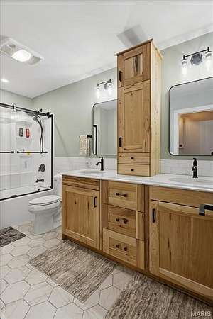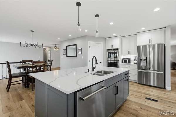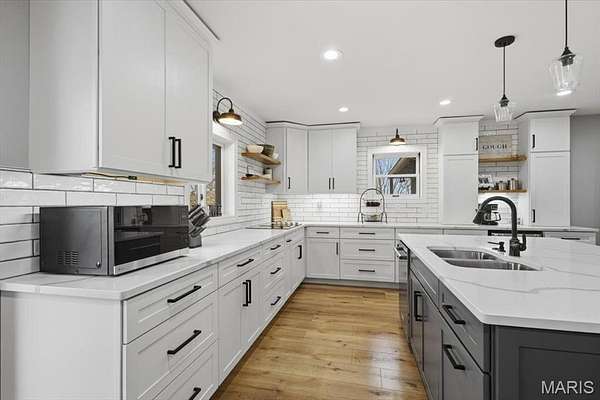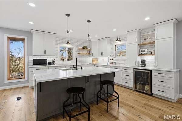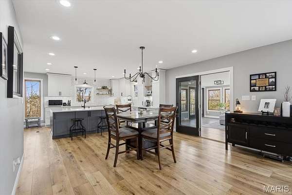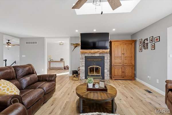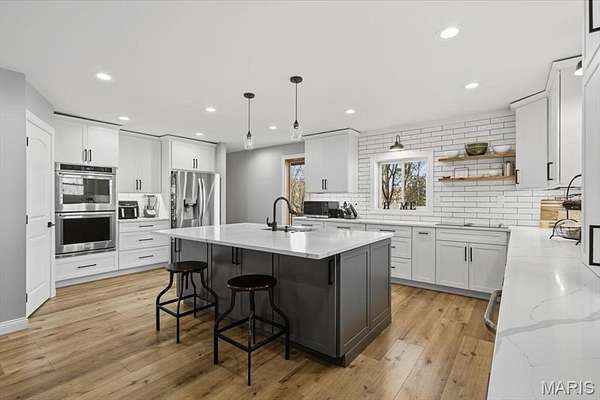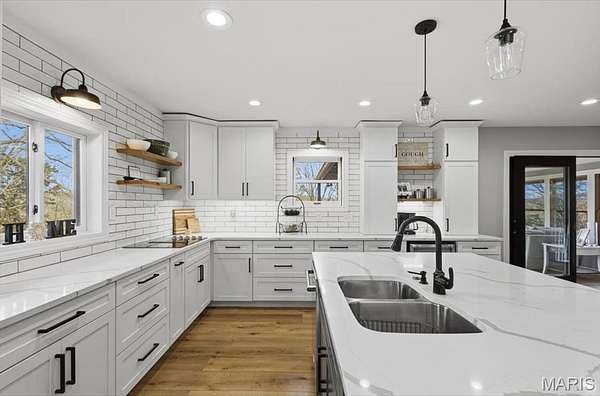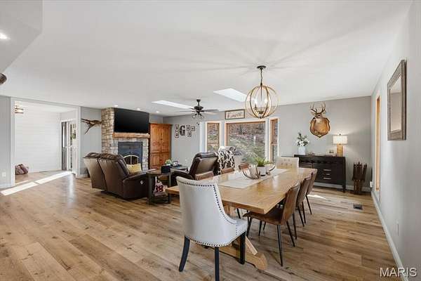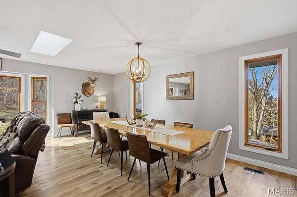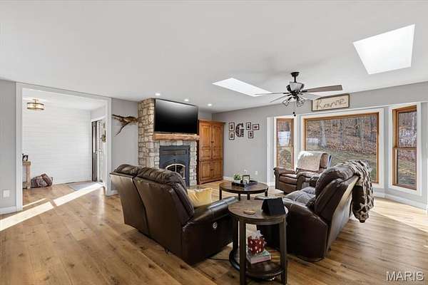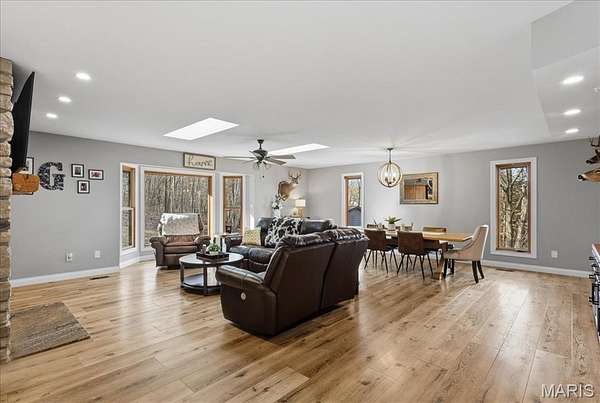 Absolutely stunning ranch property on over 9 acres in the Rockwood school District! Wind up a private asphalt driveway to tremendous curb appeal and breathtaking views. This extensively renovated home includes well over 3500 ft.² of living space, four bedrooms, three full baths and a ridiculous list of improvements. Enter through the entry foyer and you'll feel like you stepped into a home and garden magazine! To your left is an expansive family room with recessed lighting, bay window extension, full stone fireplace insert with rustic mantle, skylights and dining room area. Recently renovated custom kitchen impresses with large center island w/sink, 42 inch custom cabinetry, high-end stainless steel appliances, wall ovens, floating shelves, walk-in pantry and dining area. Adjacent four seasons room is surrounded by wall of windows overlooking beautiful wooded scenery. Main floor master bedroom suite includes a walk-in closet, ceiling fan, large master bath and private deck access. Two additional and spacious bedrooms on the main level share a meticulously renovated full bath with dual vanities and glass enclosed tub/shower surround. Walk down a custom, open staircase to a fully finished lower level with walkout access & an abundance of natural light. You'll find tall ceilings, game/media area, 4th bedroom, third full bath, laundry and utility rooms, tons of storage & 5th possible BR/home office. Walk outside to a covered patio, multiple entertaining spaces, retaining walls, fire pit, and so much more. This property also includes an additional two car oversized garage, a separate storage shed & acres of gorgeous land to utilize/explore. Walking distance to Mirasol, RSD, JeffCO taxes. This one is a MUST SEE!