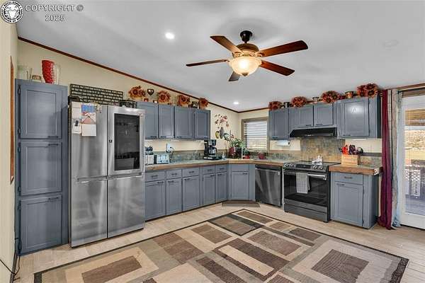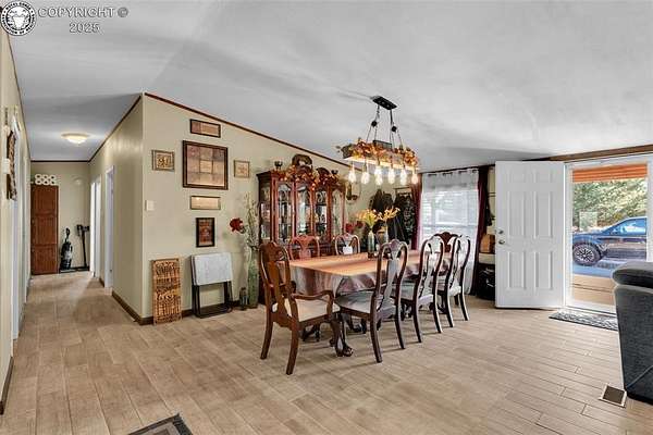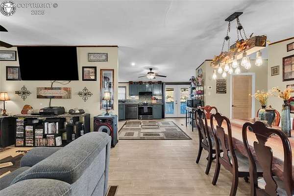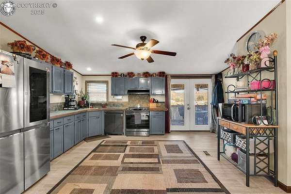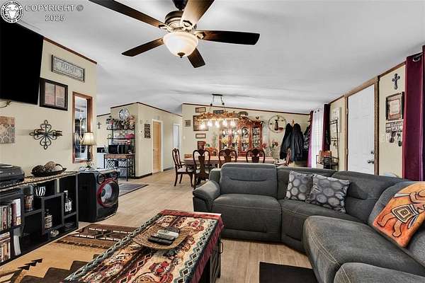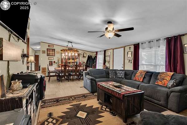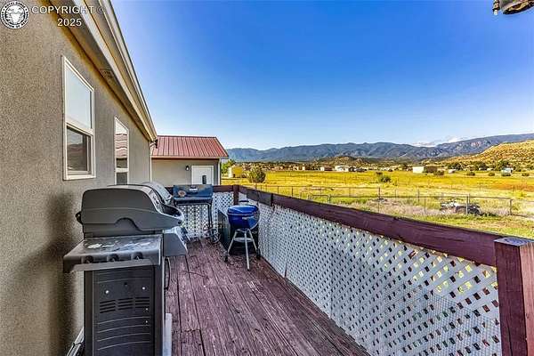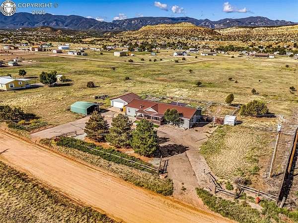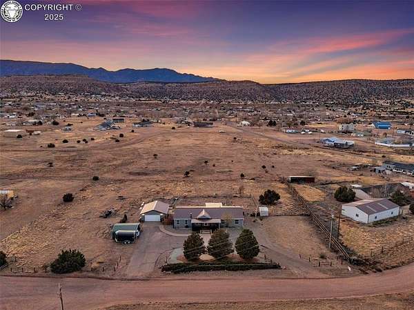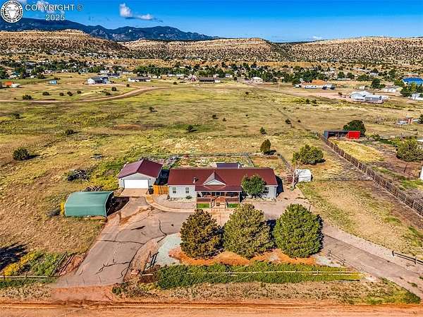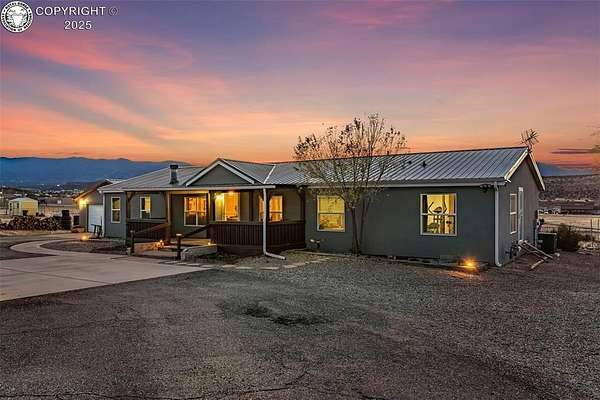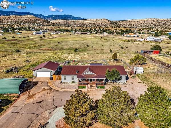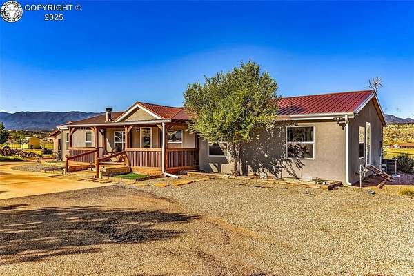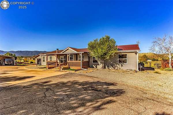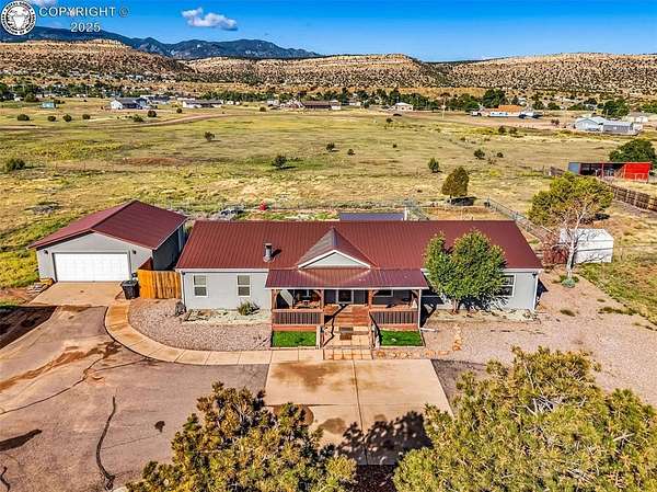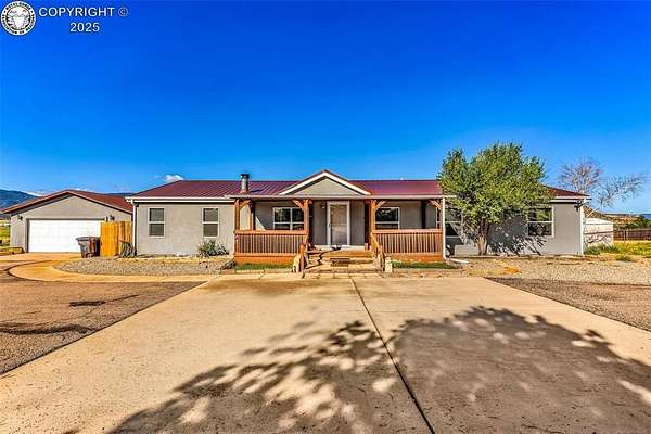 Major price improvement - reduced by $20,000! Welcome to 9 Needham Place-an updated 5-bedroom, 3-bath ranch-style home offering 2,077 sq ft of living space on nearly 1.8 acres with sweeping views of the Wet Mountains and Rock Bluffs. Recent upgrades include a new metal roof, stucco, windows, attic and belly pan insulation, plus a new furnace and central A/C for year-round comfort and efficiency. The spacious kitchen with stainless-steel appliances flows into a formal dining room, while the main living areas feature attractive tile plank flooring. The private primary suite offers a walk-in closet, soaking tub, and separate shower. Natural light fills the home, enhanced by thoughtful updates and energy-saving features. Outdoors, relax on the covered front and back decks, entertain in the large fenced yard, or take in the mountain views. A detached 2-car garage with 220v service, a 2-car carport, circular concrete and asphalt driveways, and ample space for RVs, trailers, or toys make this property ideal for both daily living and recreation. This property also provides flexibility for gardening or animals. With natural gas, central heating and cooling, ceiling fans, and even a doggie door, this home blends country charm with modern convenience. Move-in ready and beautifully maintained-don't miss your chance to own this Williamsburg gem!