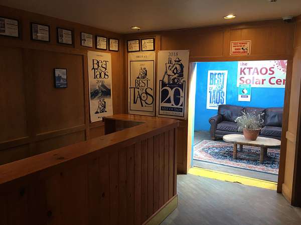 From the intersection of US 64 and NM 150, take a right toward Arroyo Seco and Taos Ski Valley. Take first right into shared parking lot, and take first left to KTAO Solar Center.