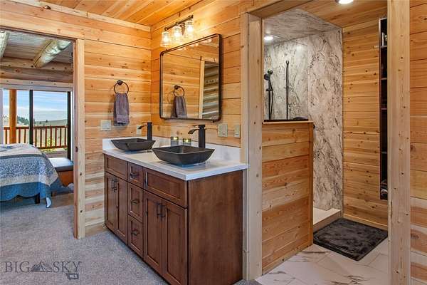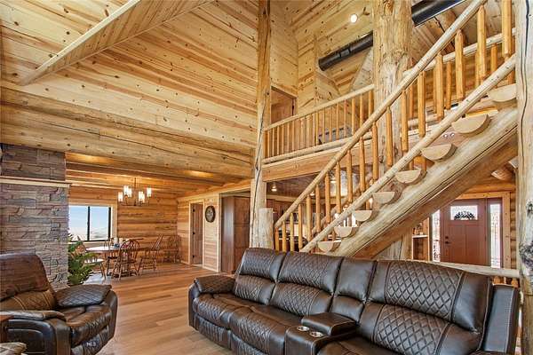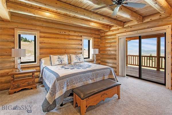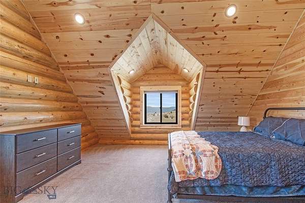 Introducing an exceptional opportunity in Butte, Montana-a stunning, brand-new log home situated on 20 acres. This impressive property features 4 bedrooms, 5.5 bathrooms, and a walk-out basement, meticulously crafted with logs and home plans from Lazarus Log Homes in Whitefish, Montana. Built in 2024 and recently occupied for 2 months, the home and garage are insulated with Corbond for optimal energy efficiency, complemented by sturdy 10-inch logs. The interior showcases a beautiful kitchen and dining area seamlessly integrated with the living space, enhanced by abundant natural light through expansive windows. The main level includes a convenient laundry room and a cozy gas fireplace. A triple car finished garage with a 25-foot apron offers extensive storage and parking. Additionally, a 30'x40' Corbond-insulated shop with 3 overhead doors and a service door awaits, perfect for storing Montana toys. Landscaping, including a stamped concrete patio on the north-facing front side, is scheduled to commence soon. The basement is designed for flexible living, featuring plumbing for a kitchen, air conditioning, a heater, and an on-demand hot water tank. The property benefits from a productive well yielding 25 gallons per minute with a 60-gallon pressure tank, supplemented by an owned underground 1000-gallon propane tank. An annual HOA fee of $400 covers road maintenance, ensuring year-round accessibility. Located just minutes from town, this property offers frequent wildlife sightings, including moose, deer, and elk, visible from the spacious deck and patio. Its proximity to State and BLM lands provides endless recreational opportunities. Whether you're entertaining guests or seeking tranquility amidst nature, this meticulously designed home offers the perfect backdrop for your Montana lifestyle.