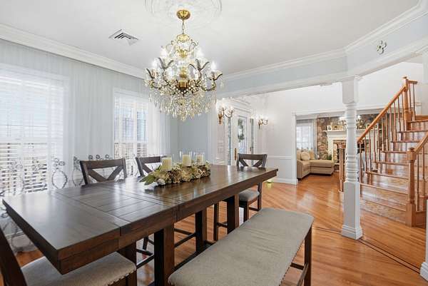Welcome to this stunning Colonial tucked away on a peaceful cul-de-sac in Garnerville, offering the perfect blend of space, comfort, and scenic beauty. This exceptional 4-bedroom, 4.5-bath home boasts approximately 2,408 sq. ft. of thoughtfully designed living space and sits on a picturesque 1.62-acre lot bordering state land with mountain and water views. Step inside to a gracious foyer and discover an updated eat-in kitchen featuring quality appliances, granite countertops, and abundant cabinetry-ideal for everyday living and entertaining. The open flow from the kitchen to the formal dining room and spacious family room creates a seamless layout perfect for gatherings. This inviting space is highlighted by soaring ceilings and a cozy wood-burning fireplace, adding warmth and charm to the heart of the home. Hardwood floors and natural light enhance the home's welcoming atmosphere throughout. Upstairs, the generous primary suite offers a peaceful retreat, while additional well-appointed bedrooms provide ample space for guests, or a home office. The finished walk-out basement includes a full bath, kitchenette, and expansive living area-perfect for recreation or flexible living space. Outdoor living shines with a wraparound porch, spacious deck, and beautifully landscaped grounds that blend into the surrounding wooded backdrop. Enjoy privacy, tranquility, and direct access to nearby trails leading toward Hi Tor Mountain. Additional features include central vacuum, sprinkler system, security system, motorized awning, and a two-car garage. Conveniently located near major roadways and commuter options to NYC, this remarkable property offers peaceful cul-de-sac living with accessibility-an exceptional opportunity in a desirable Rockland County location.