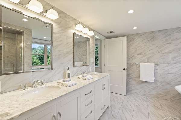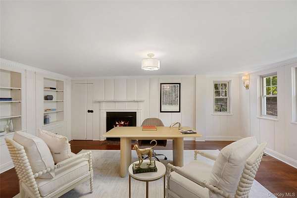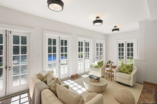Rare Estate Compound. Surrounded by bucolic countryside, nearly seven acres in an area of foremost country homes and estates. Verdant rolling lawns lined by old stone walls, specimen trees, apple orchard and beautifully flowering shrubs. Rambling Country Colonial, circa 1925, the former home of actor EG Marshall. Completely updated with nicely proportioned rooms, substantial moldings, extensive millwork, hardwood floors and five fireplaces. Formal Living and Dining Rooms both with fireplaces. Warm and inviting Sunroom. Incredible Chef's Kitchen with high end appliances and Breakfast Area with doors to terrace. Spacious Family Room. Library/Home Office with fireplace. Private Primary Suite with fireplace, Dressing Room and Bath. Five additional Bedrooms, all with en suite Baths. Private terrace and Swimming Pool. Additional outbuildings include a Three Bedroom Cottage, a Two Bedroom Cottage and a Four-Car Garage with One Bedroom Apartment. Greenhouse with Potting Shed and Storage Barn. A rare compound for extended family, staff or income. Incredible opportunity!
