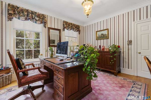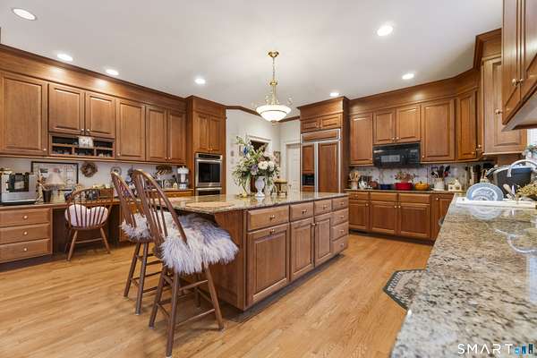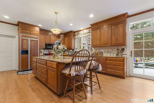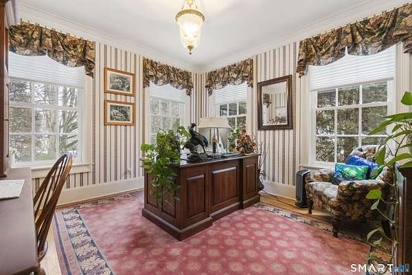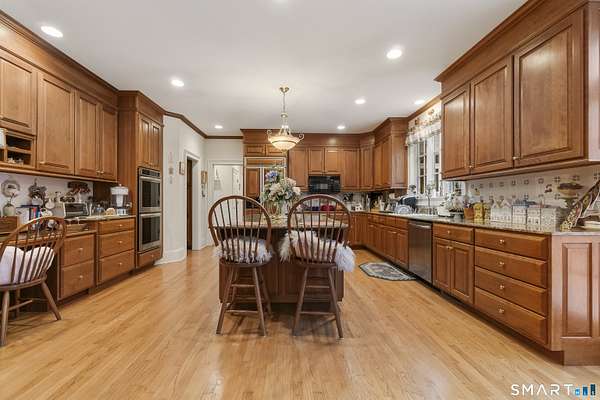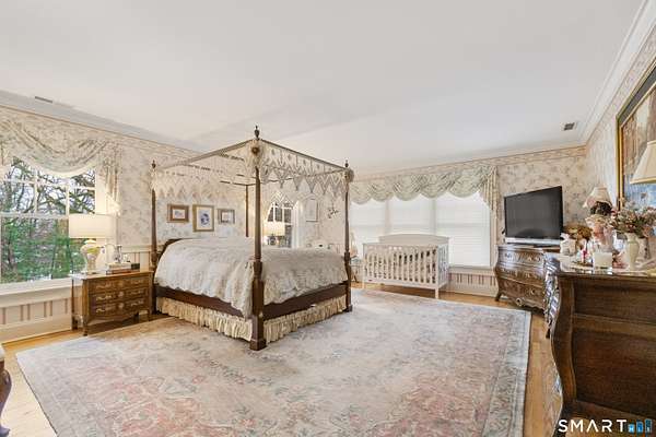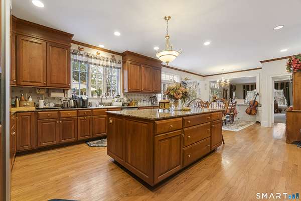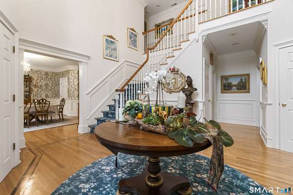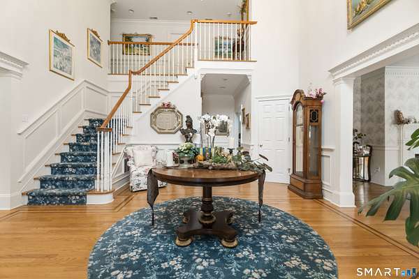 Experience luxury living in this exquisite Garceau-built colonial, nestled on a sprawling 2.20-acre site in the heart of Central Woodbridge. Boasting over 8,000 sqft of unparalleled craftsmanship, this home is a work of art. Hardwood floors grace every corner, leading to 4 bedrooms, including a primary suite with a full bath and walk-in closet, mother-in-law with own entrance and full bath. The family room with a fireplace, custom kitchen, sunlit breakfast nook, and a beautiful sunroom make everyday living a joy. Enjoy outdoor bliss with an in-ground pool, patio, and deck on this private lot. Conveniently located for easy access to Yale, downtown New Haven, and major routes. With a gazebo, 3-car garage, and turnkey condition, this property is a dream. The stunning entryway welcomes you with a one-of-a-kind chandelier, adding to the allure of this luxury home. The owner is open to including furniture, making this an exceptional opportunity to own a true masterpiece. Don't miss out on the chance to own this impeccable property home!