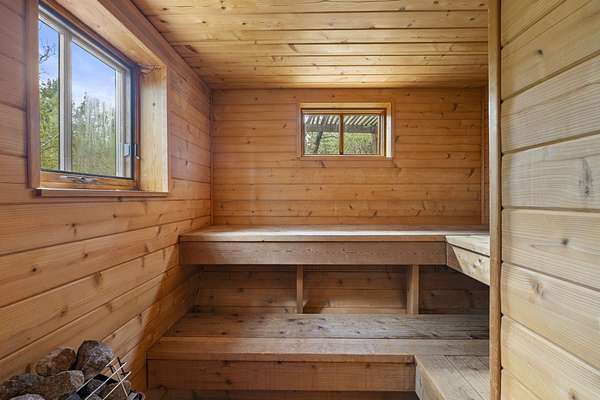 - Beamed Ceilings, Central Vacuum, Interior Steps, Sauna, Wet Bar, Wine Cellar