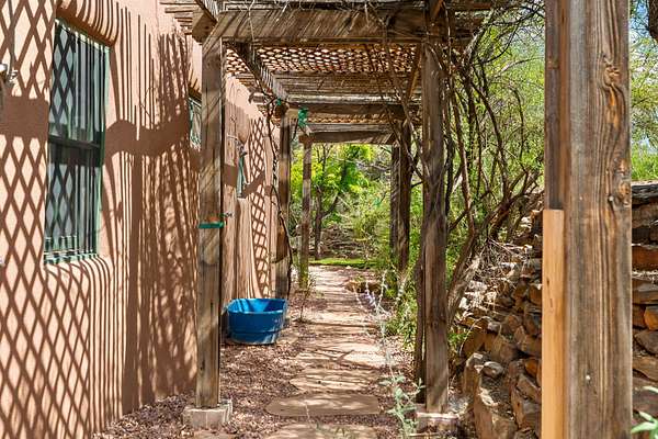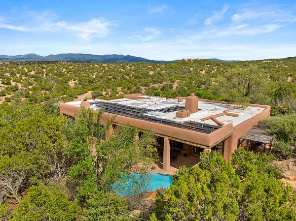 What kind of story are you ready for?? Santa Fe style meets European Country Estate! This 4 bedroom, 4 bathroom, high-quality Rastra construction features soaring ceilings, hand carved vigas, and far-reaching mountain views. Walking into the grand entrance, you are greeted by voluminous curved walls, golden-soft natural light, wide-plank pine floors, and a stately fireplace, which set the stage for an elegant Santa Fe lifestyle. The open concept French country kitchen faces a spacious den with views framed by large picture windows, and features an oversized island topped with granite. There is plenty of counter space for cooking and for entertaining guests. High-end appliances include a large Sub-Zero refrigerator, a six-burner Viking range, and a Bosch dishwasher. Additionally, this home's temperature-controlled wine cave accommodates 1500-2000 bottles for the serious aficionado. Relax in front of one of five fireplaces, and enjoy a large, formal dining room with views that will sweep guests off their feet! Or, linger over a morning cup of coffee on the grand portal overlooking the koi pond and the Jemez mountains. The lavish primary suite is on the main level and will have you living in luxury with a large deep, soaking tub, a private cedar-lined sauna, and a steam shower. There are several rooms downstairs (including a bathroom) which could be used as a mother-in-law suite, offices, or an artist studio. Complete with a TPO roof, an oversized two-car garage, and beautiful landscaping on drip irrigation, this is a timeless space you'll never want to leave. Rastra construction and owned solar panels create an extremely energy efficient environment, with almost non-existent electric bills. New stucco was done in 2025. Enjoy proximity to the club at Las Campanas, but without the high HOA fees. Don't miss this chance to live your dream Santa Fe lifestyle!