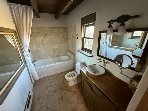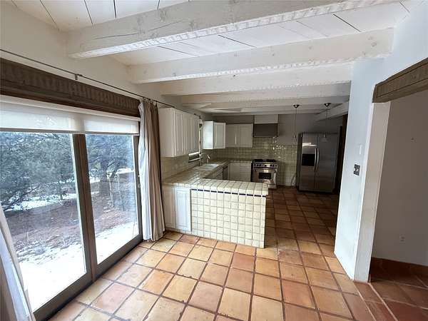 Est $2,758/moNestled on a private, wooded 2.88-acre lot, this two-story pueblo-style home offers peaceful living with classic Santa Fe charm. The main house features three bedrooms and 2 1/2 bathrooms, a spacious kitchen with tile countertops and Saltillo tile floors, and a cozy family room with brick floors and a built-in fireplace. Enjoy outdoor living on the large brick patio overlooking the serene backyard-all offered at a great price.