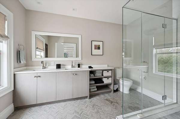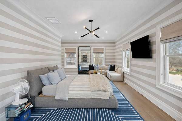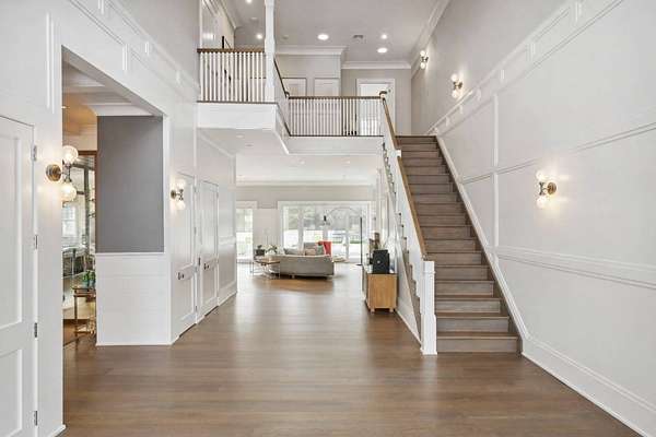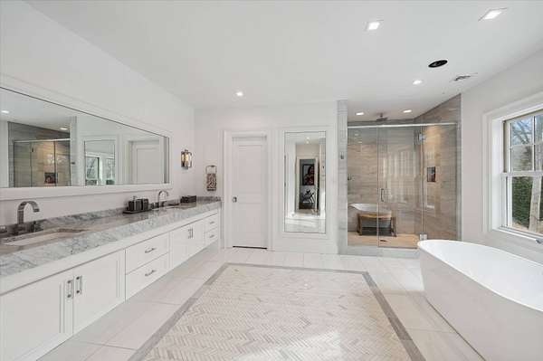 Escape to this pristine estate nestled on over +/-3.15 acres within North Haven Point. As you meander down the private road, experience the serenity of the captivating water views of the Bay. Perched atop a hill, this traditional seven-bedroom, nine-bathroom residence is a masterpiece, featuring exquisite designer decor and an open-concept floor plan. Glass sliding doors grace the rear of the house, offering stunning views of the property, complete with an expansive pool and spa, and several outdoor entertaining spaces. The first floor boasts a chef's kitchen, formal dining area, impressive wine closet, and a formal living space that can double as an office. Ascend to the second level to discover the primary bedroom suite, alongside four guest bedrooms and a convenient laundry room. The lower level provides additional recreational living spaces, a bunk room, home gym and two bathrooms and another laundry room. The private community offers tennis courts and a nearby bay beach to leave kayaks or paddle boards. Experience the epitome of luxury living in this meticulously crafted haven. Only a stone's throw to Sag Harbor Village shops and restaurants.