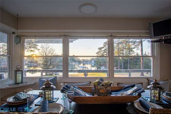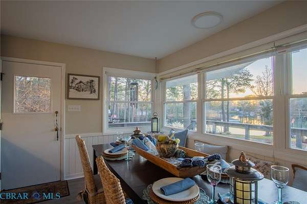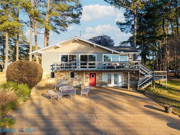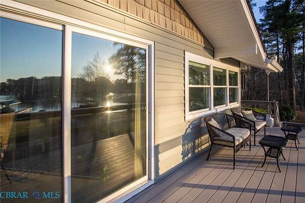 Cobbs Creek Treasure! Waterfront home in sought after premiere location offers magnificent views, stunning sunsets, deep (6+ mlw) protected water in No Flood Zone. Located near the water junction of Cobbs Creek and the pristine Piankatank River perfect for boating, fishing and easy access to the richness of the Chesapeake Bay. Over 3500 feet of finished living space and more to optionally finish. This home features granite kitchen overlooking the water, open airy living room with walkout to wraparound waterside deck, cathedral ceilings, stunning views, fireplace. Space includes Four bedrooms, office, 4.5 baths, extra canning kitchen & utility plus an unfinished party space with walk out to water. Outside living includes large aggregate entertaining area suitable for weddings and family gatherings gently leading to the water. Large detached garage, pier with boatlift, sandy kayak launch area.