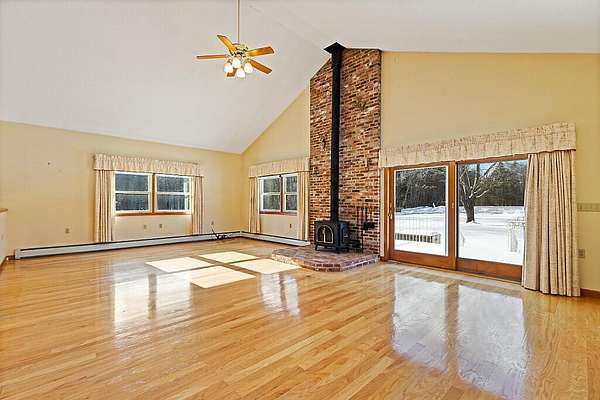 - Baseboard, Heat Pump, Hot Water, Wood, Wood Stove