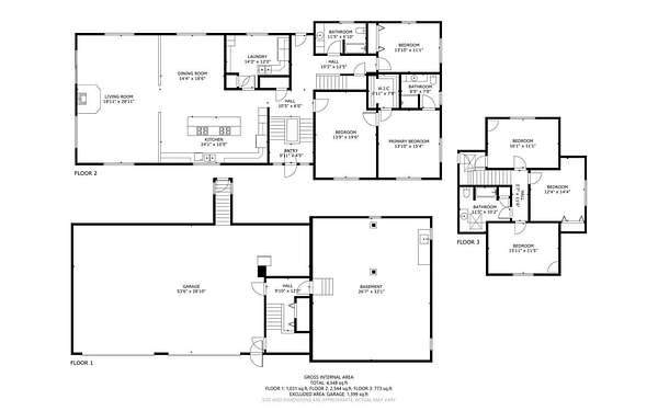 - Basement, Bathroom x 3, Bedroom x 5, Dining Room, Laundry Room x 2