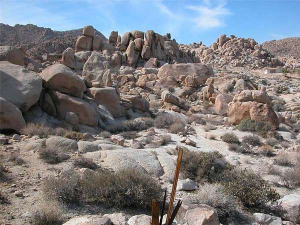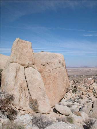 Parcel 0604-081-09, 5.08Acres; Parcel not to be accessed without owner's presence & neighbors are not to be disturbed. World class parcel unique for custom organic architecture such as Couelle, or Lautner. Kellogg Hi-Desert House, located about 3 mi due East in similar terrain. Desert solitude, privacy, vistas, rock climbing with nearby suburban amenities. Shielded by 2 SFR parcels and 2 BLM parcels. Elec Pwr, & Water Utilities within 1-2 parcels of site. On site mountainous boulders (up to 30ft dia.) allows flexibility in custom structural design, & stone art sculpting. The parcel has about a 300ft vertical rise in elevation. Within 3/4 mile of Medical Emergency Room and Law Enforcement facilities. Same latitude as the Joshua Tree Natl Park, N Boundary, between Joshua Tree and 29 Palms entrances.
