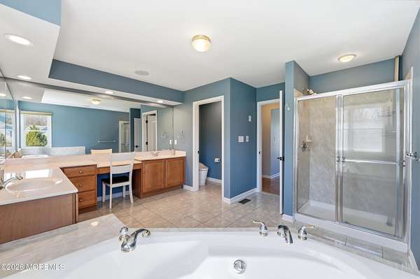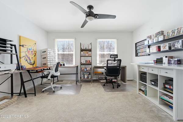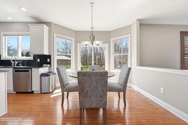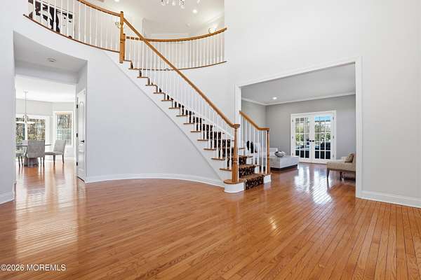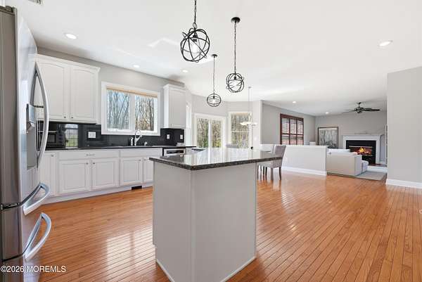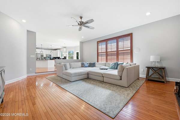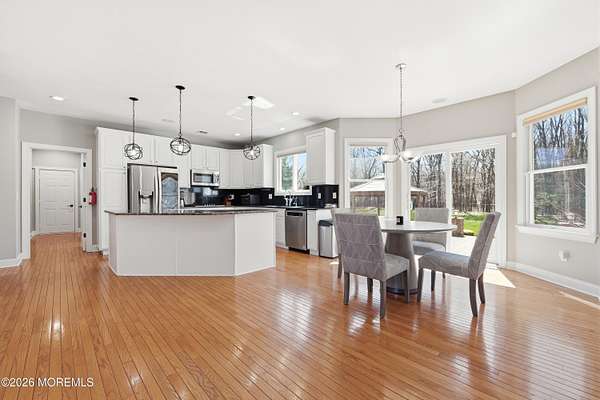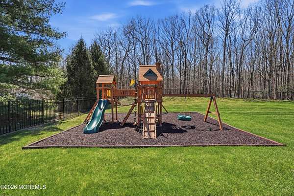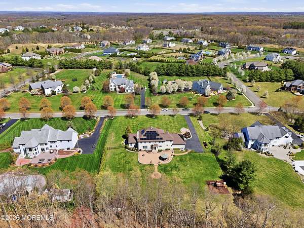 Welcome to this east facing home, an exceptional residence located in one of Millstone Township's most coveted communities, Millstone Ridge. This beautifully appointed home offers 5 bedrooms and 4.5 bathrooms, brand new HVAC systems, thoughtfully designed to balance open concept living with warm, inviting spaces throughout. The main level features an expansive open floor plan complemented by rich wood flooring, a two-story entry, and custom molding. The heart of the home flows seamlessly into an expanded conservatory, ideal for entertaining with vaulted ceilings and an abundance of windows that fill the space with natural light. A first floor guest suite provides convenience and flexibility, while the kitchen showcases granite countertops, stainless appliances, and ample workspace for everyday living and hosting. Upstairs, you'll find 4 additional bedrooms, including a princess suite and Jack & Jill bedrooms, along with a spacious primary retreat offering a private sitting area, dedicated office space, and a walk-in closet, creating a true sanctuary. Fresh paint throughout the upper level adds a crisp, move in ready feel. The home also features a full basement with high ceilings, offering endless potential for future living or recreational space. Step outside to a fully fenced yard enhanced by professional landscaping and lighting, a paver patio, and a custom fire pit perfect for cozy evenings and outdoor gatherings. Solar panels add energy efficiency and long term savings. This is a rare opportunity to own a truly special home in one of Millstone Township's most exquisite neighborhoods. Don't miss the chance to experience the lifestyle and elegance this one offers.