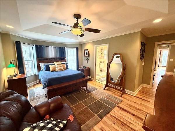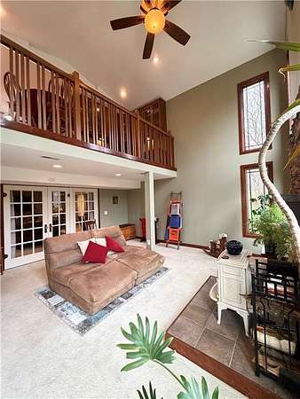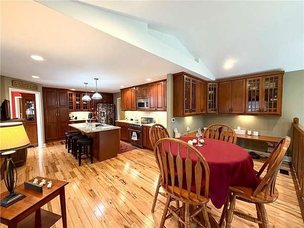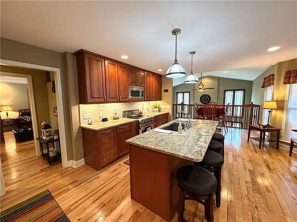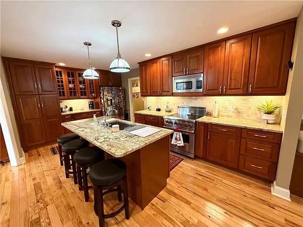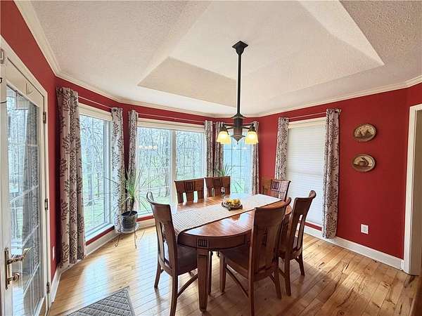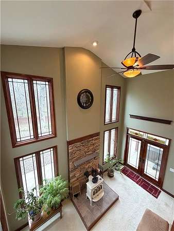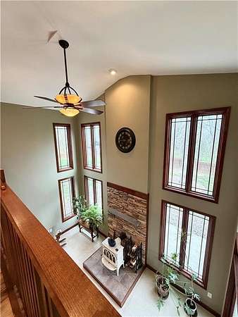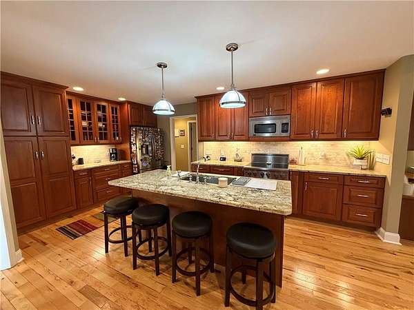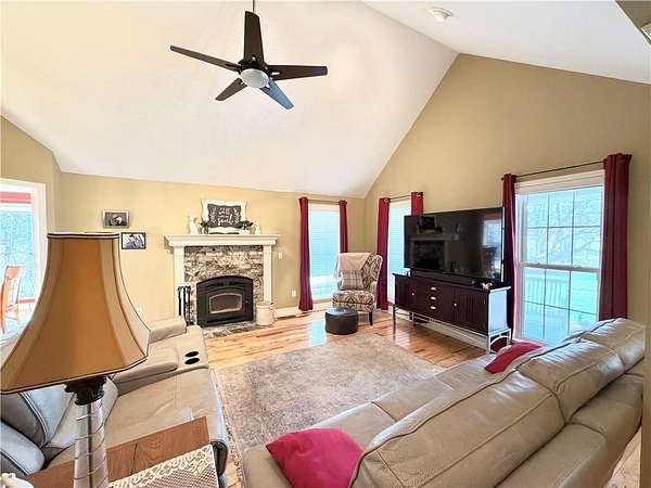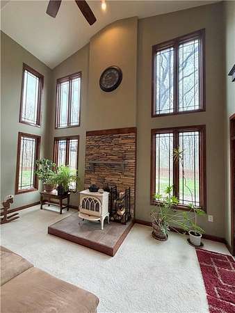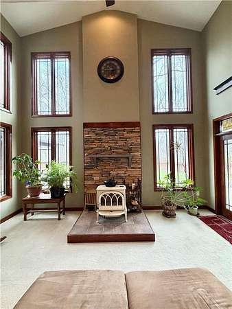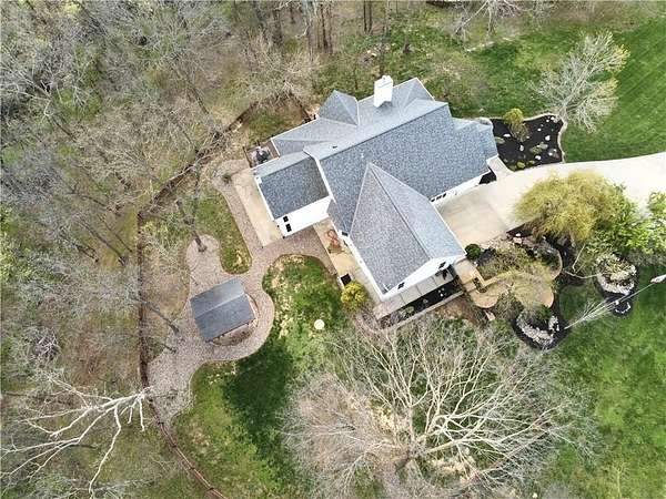 Nestled on three private acres in the Woodland Trails subdivision, this stunning 4-bedroom, 3-bath estate blends luxury, comfort, and nature in perfect harmony. A 300-foot paved driveway winds towards the home, offering privacy and a grand first impression. Inside the home boasts refined craftsmanship and thoughtful upgrades throughout including a heated bathroom floor, a gourmet kitchen with premium Viking stove & microwave, and a sunlit two-story sunroom with wood burning stove that frames sweeping views of the peaceful, wooded surroundings. The main level features open living spaces ideal for entertaining, while the family recreation room provides a relaxed retreat for movie nights or gatherings. Outdoors, enjoy endless opportunities for fun and relaxation: a wrap-around porch perfect for morning coffee or a soak in the hot tub, a serene koi pond, a pavilion for outdoor dining, and a fenced backyard for pets or play. The 2-car garage and dedicated home gym add convenience and function, ensuring every comfort is within reach. Woodland Trails has many hiking trails throughout while still maintaining a feeling of privacy. This home has beautiful landscaping and is truly a peaceful tranquil retreat.