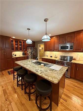 - Dishwasher, Disposal, Electric Range, Free-Standing Electric Oven, Microwave, Stainless Steel Appliance(s), Water Softener