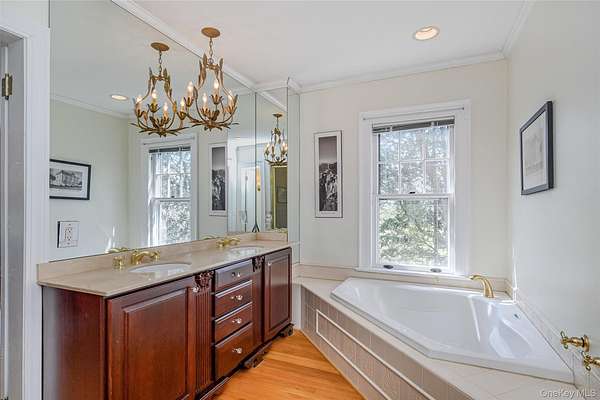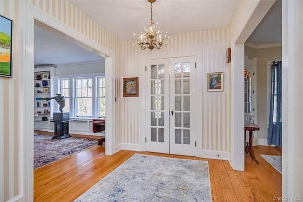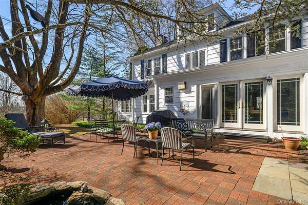 This lovely historic center hall colonial nestled in the coveted Taunton Lake area of Newtown features charming period details. Set back from a quiet lane in a beautiful, private setting with sweeping lawns, mature specimen and ornamental trees, plantings, cutting gardens and meandering pathways through secret spaces. A welcoming foyer greets you as you enter this 3BR, 3.5 BA home that boasts a magnificent front-to-back living room featuring windows at each end offering views of the front and back lawns with built-ins and a fireplace along with a large dining room with corner china cabinets. A bright, roomy eat-in kitchen with stainless steel appliances including a 6-burner stove with dual ovens, granite counter tops and a walk-in pantry leads to a sizeable brick patio with a cascading fountain offering sweeping vistas of the tree-covered property. A sun filled den with wood-burning fireplace, and powder room complete the first floor. A grand staircase leads to a landing with a seating bench and large window before encountering the three bedrooms and three bathrooms on the second floor. The spacious primary bath features double sinks and vanity, walk-in shower, Jacuzzi tub, water closet and a generous dressing room. The hall bath is complete with a shower/tub combination, a vanity with ample storage and a large window overlooking the front lawn. A Jack 'n Jill bath between the two secondary bedrooms has a Jacuzzi tub. Also included are two attic spaces one located above two-car garage and a daylight basement with endless possibilities for storage, hobbies or expansion as well as a wine closet. As you walk through the gardens, you'll discover magnificent cedar, linden, maple, pine and spruce trees along with cut-leaf maples, a blackberry bramble, an enormous bottle brush, and numerous flower beds. A garden shed provides space for storage. This lovingly maintained home with recent exterior paint job, newer roof, central heat and air, and easy access to I-84, and Hwy. 6/25 is just over an hour's drive to Manhattan. Living here you'll benefit from the close-knit Newtown community, its abundant cultural and dining scene and incomparable schools. This is the elegant, private manor home you've been seeking. WELCOME HOME!