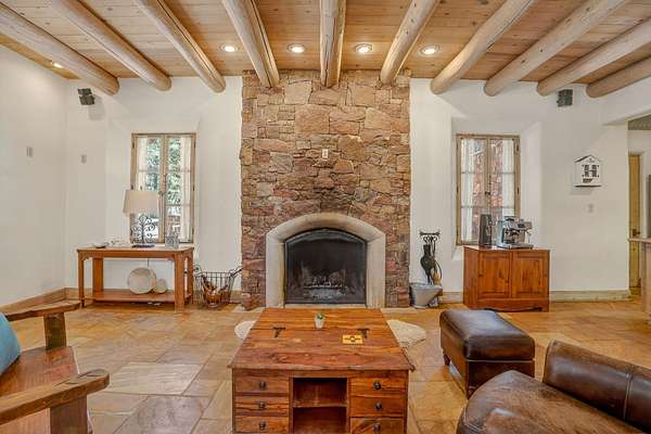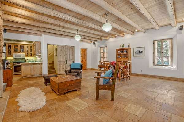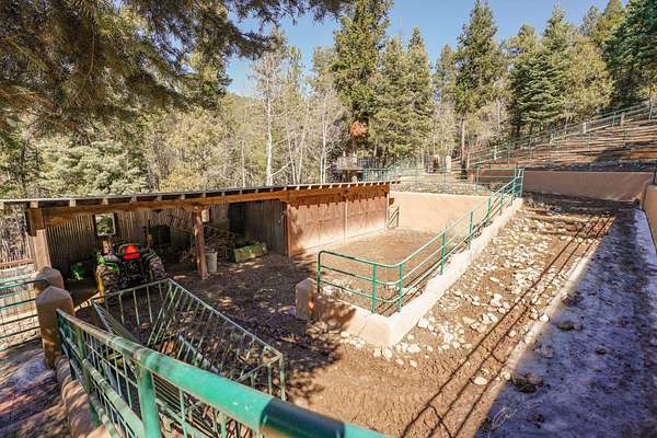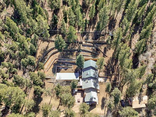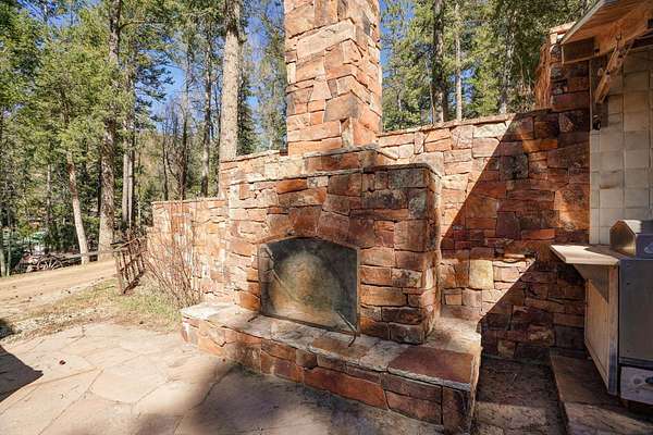 Set on 2.9 acres bordering the pristine Carson National Forest, this exceptional Taos property offers a rare opportunity to enjoy natural beauty and refined Southwestern living, with direct access to protected forest land. Ideally located just 8.3 miles from the Taos Plaza, approximately 40 minutes to Taos Ski Valley, and approximately 25 minutes to Angel Fire Resort, the home provides both convenience and a true sense of escape. This thoughtfully designed and custom-built 2 bedroom, 2.5 bath residence blends craftsmanship with comfort. Rich brick, stone tile, and wood flooring flow throughout, while wood ceilings and abundant skylights bathe the interiors in natural light, creating a warm and inviting atmosphere. The grounds are equally impressive, featuring a large barn and extensive paddocks, ideal for the resident llamas. Entertaining is effortless with an inviting fireplace patio and a separate fire pit, perfect for taking in Taos' star-filled skies. This is a truly special offering where access to nature and timeless Southwestern design come together in one remarkable setting.