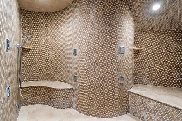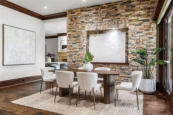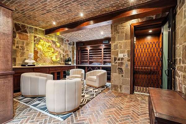 A dedicated wine cellar provides the perfect space for wine enthusiasts and entertaining. Two private offices offer ideal work-from-home spaces, while an elevator allows convenient access between floors. The home also includes a dedicated workout area, dual laundry rooms for added convenience, and a spacious six-car garage offering extensive vehicle and storage capacity.
