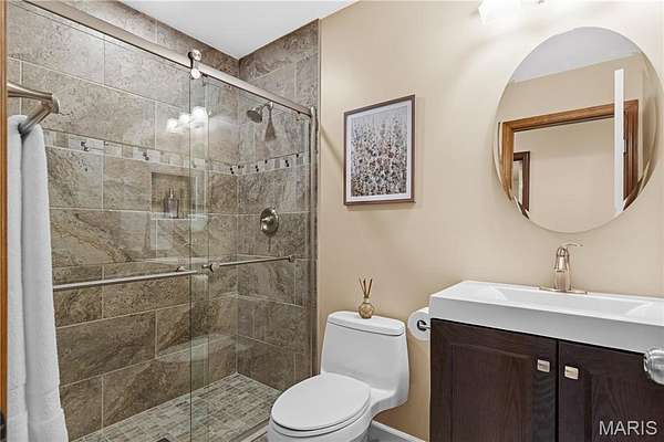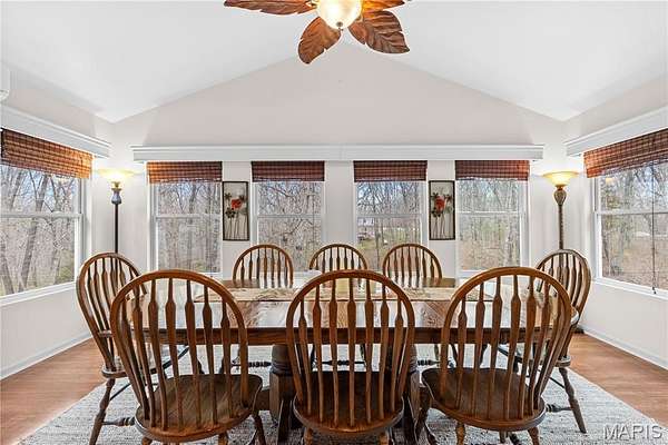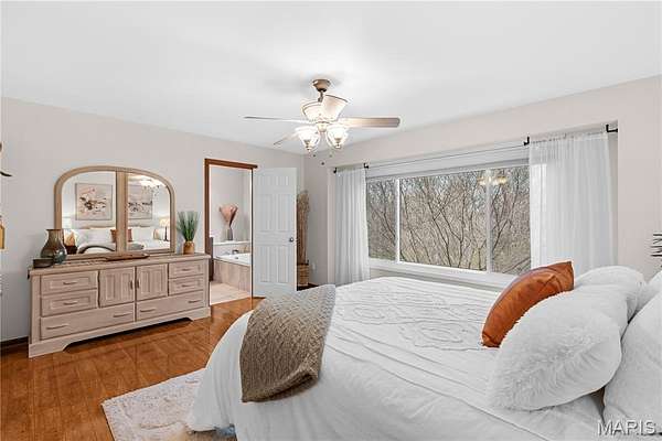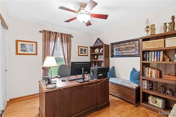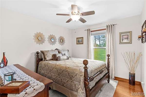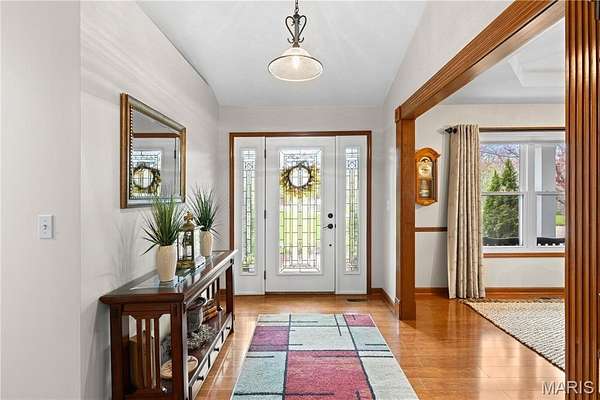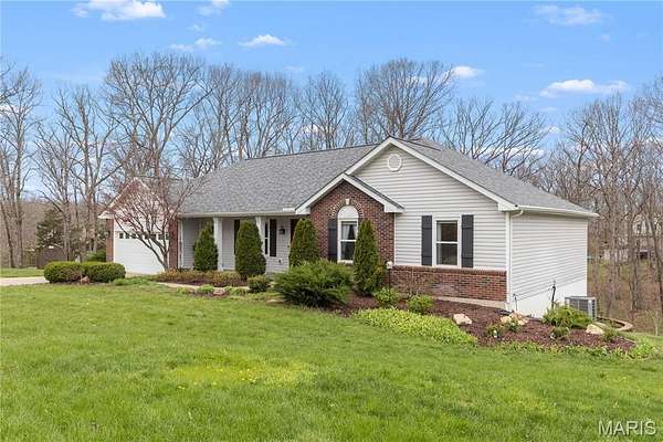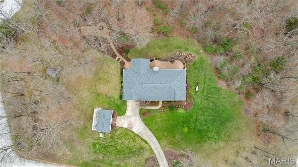 Welcome home to this beautifully maintained 3 bed, 3 full bath ranch nestled on 3 private acres in sought-after Foristell in Wentzville School District! From the moment you arrive, you’ll appreciate the peaceful, wooded setting, long driveway, and additional outbuilding—perfect for storage, hobbies, or a workshop. Inside, the home offers a warm and inviting layout with laminate flooring, a vaulted great room with stone fireplace, and abundant natural light throughout. The updated kitchen features white cabinetry, granite countertops, stainless appliances, center island, and opens seamlessly to both dining and living spaces—ideal for everyday living and entertaining. Convenient main floor laundry adds to the ease of one-level living. The spacious primary suite offers serene backyard views, a large walk-in closet, and an gorgeous updated bath with dual vanities, soaking tub, and separate shower. With 2 Additional main floor bedrooms and full bath provide flexibility for family, guests or home office. The finished lower level expands your living space with a large rec area, bar, full bath, and dedicated media space—perfect for entertaining. Step outside to your private retreat featuring a covered patio, extensive paver patio space, and a cozy firepit area surrounded by mature trees—an ideal setting for relaxing evenings or gatherings. This rare combination of space, privacy, and functionality with modern updates makes this property a must-see!