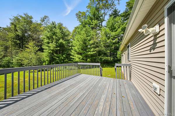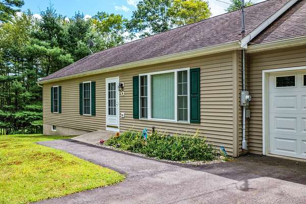 Welcome to 9W Peenpack Trail in Sparrowbush, New York. This charming ranch-style home, built in 2001, sits on 1.9 partly wooded acres just six miles from the City of Port Jervis. Meticulously maintained throughout the years, this home has been cared for with pride-shoes have never been worn inside. A paved driveway leads to the attached one-car garage and a quaint walkway that welcomes you to the front entrance. The exterior offers durable vinyl siding, a poured concrete foundation, gutters, and a spacious back deck overlooking a private backyard with a mix of open grassy space and forested surroundings. Inside, the home offers 1,250 square feet of comfortable, single-level living. The inviting living room features a large picture window and coat closet, leading into the dining area which connects seamlessly to the kitchen. Sliding glass doors from the dining area open onto the back deck, perfect for enjoying morning coffee or evening gatherings. The kitchen is designed with ample cabinet space, wrap-around counters, and room for bar stools, making it ideal for casual dining or entertaining. Down the hall are three well-proportioned bedrooms and two full bathrooms, including a primary suite with a private ensuite bath. The full unfinished basement is exceptionally clean, with walk-out access and a dedicated laundry area, providing excellent storage or future finishing potential. The location offers the perfect balance of privacy and convenience-only minutes from Port Jervis, where you'll find the NJ Transit train to NYC, local shops, dining, and everyday conveniences. The Delaware River and the Hudson Valley's best outdoor attractions, including hiking and biking trails, wineries, and scenic overlooks, are all within easy reach. 9W Peenpack Trail is an ideal retreat for those seeking peaceful, easy living surrounded by nature yet close to town.