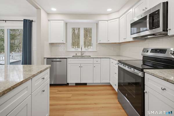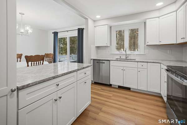 Highest and best offer deadline Sunday, February 15th at 2 p.m. Light and bright updated raised ranch with 2-car detached garage nicely situated on 1.7 acre lot backing to woods. Move right in! New kitchen with quartz countertops, stainless steel appliances and tiled backsplash. Luxury vinyl flooring. The finished lower level features large rec room made warm and cozy with stone fireplace and woodstove, 4th bedroom, office and laundry room. Large deck overlooking private backyard. New roof installed 2021.