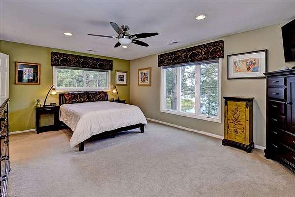 Exceptional Fisher's Creek location on 1.54 acres with waterfront views of marsh, creek, and the James River beyond. Enter the impressive aggregate driveway and emerge into the recently completed firepit sitting area, artfully nestled into the natural landscape. Seller's improvements include $112,400 for decks and $119,800 for hardscapes, firepit, and hot tub installation on waterside balcony. 1st-level bedroom w/en-suite bathroom offers privacy for guests or multi-generational living. 2nd level primary bedroom with large, remodeled bathroom; features include double sinks, tub, shower and 8' x12' walk-in closet. Open loft area provides ambient office or work area, steps away from the 3rd-level waterside balcony. Kitchen with quartz counters, breakfast area, and new ceramic tile floor. Sunroom opens to screened porch and oversized composite deck. Wonderful lower-level recreation room with additional storage space and large workshop. CLICK ON VIDEO ICON (film reel) TO TOUR.